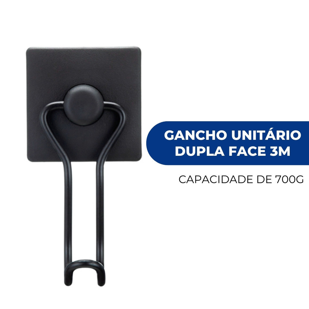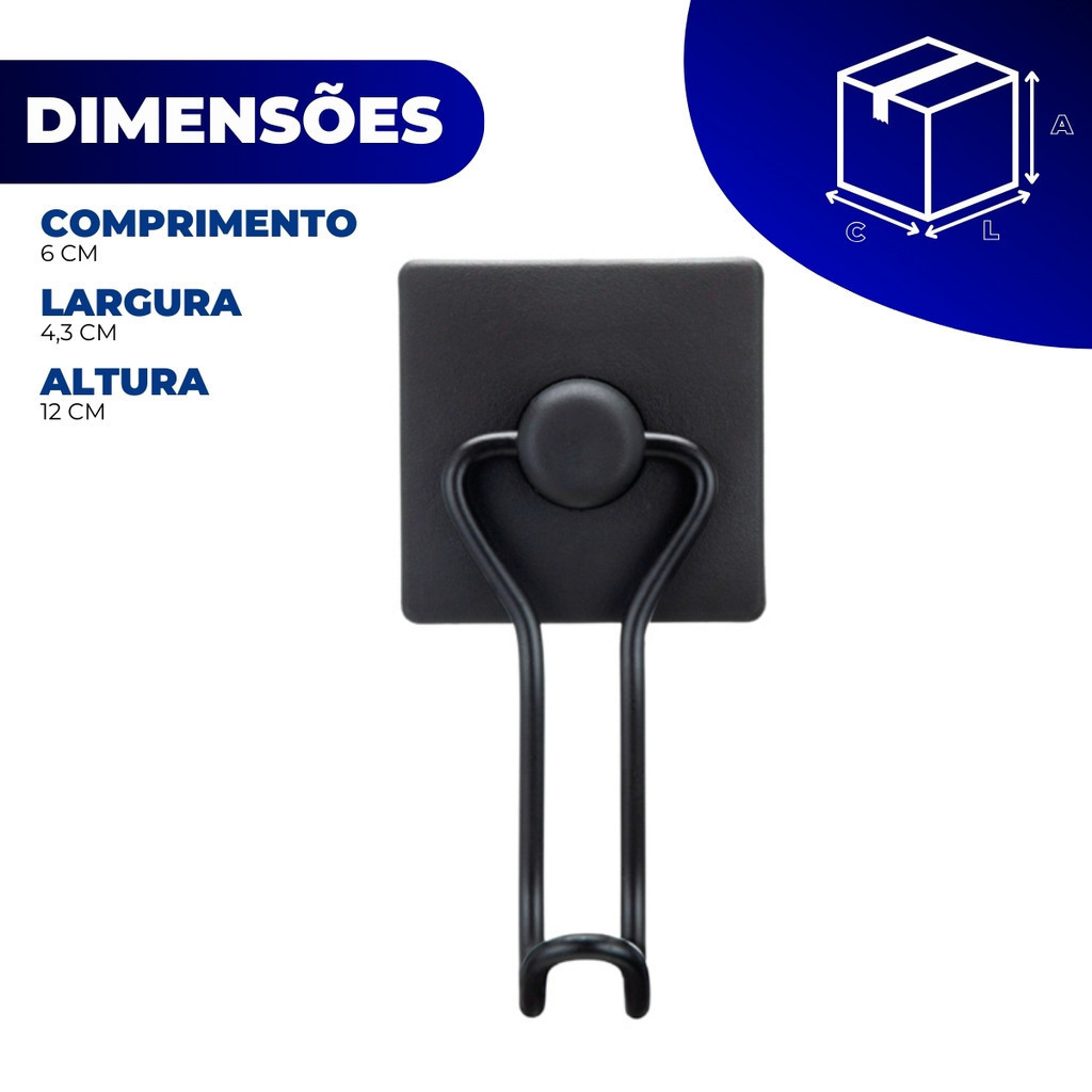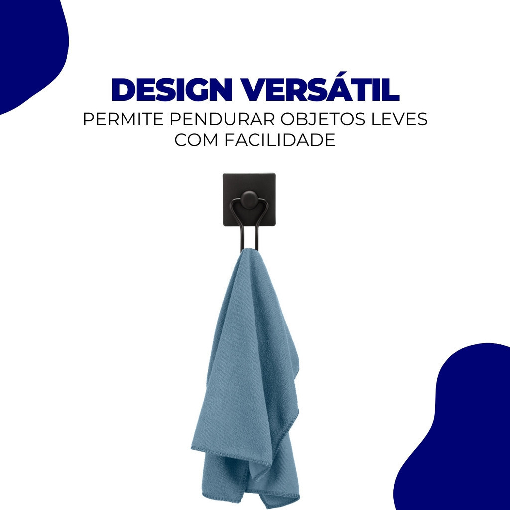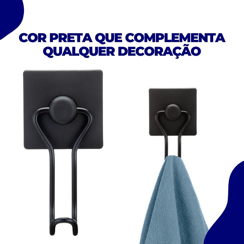 Kit 2 Gancho Cabide Suporte Porta Toalha Parede Banheiro Sem Furo Fixação Dupla Face 3M Preto Arthi