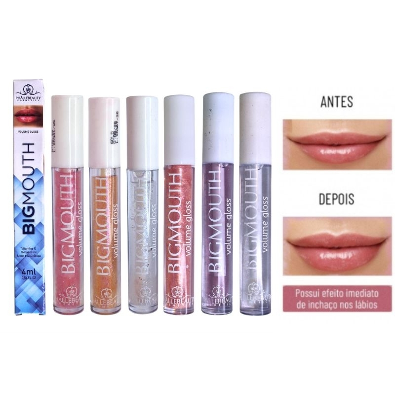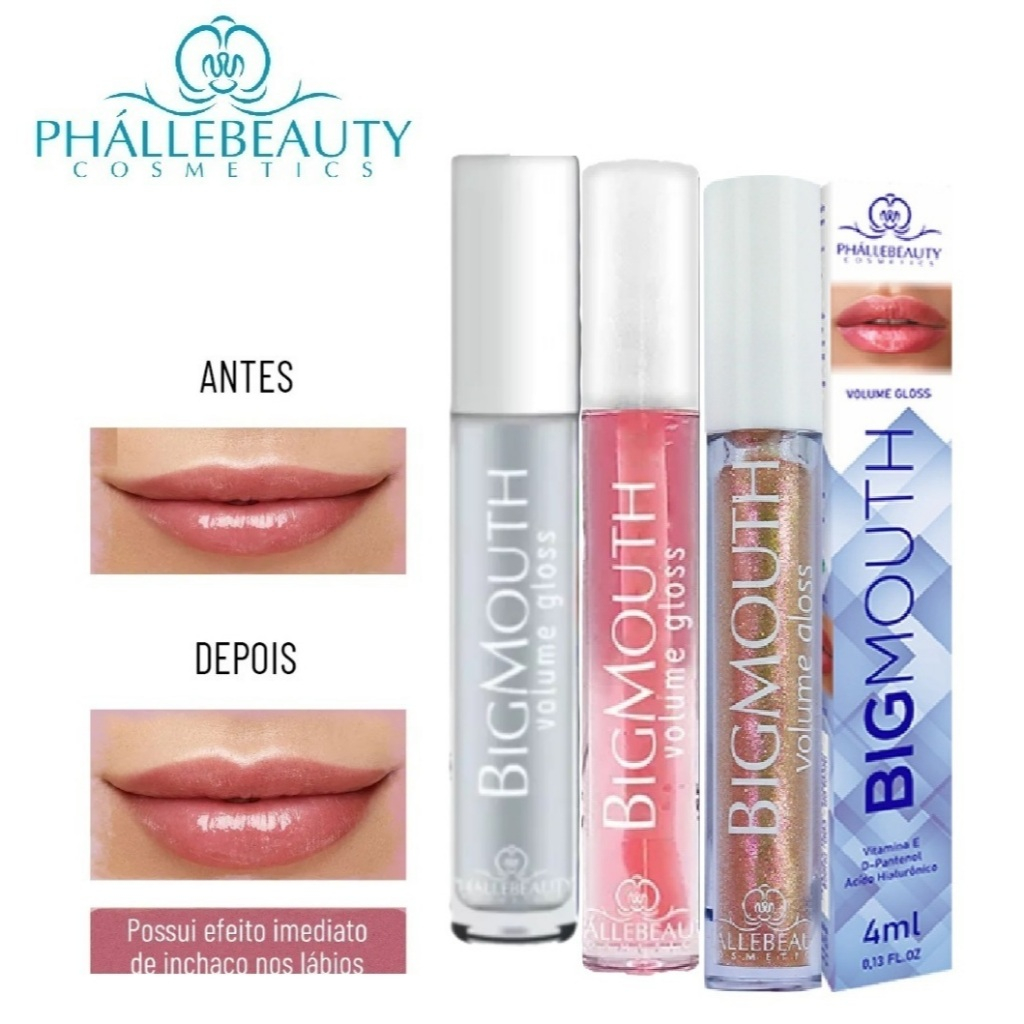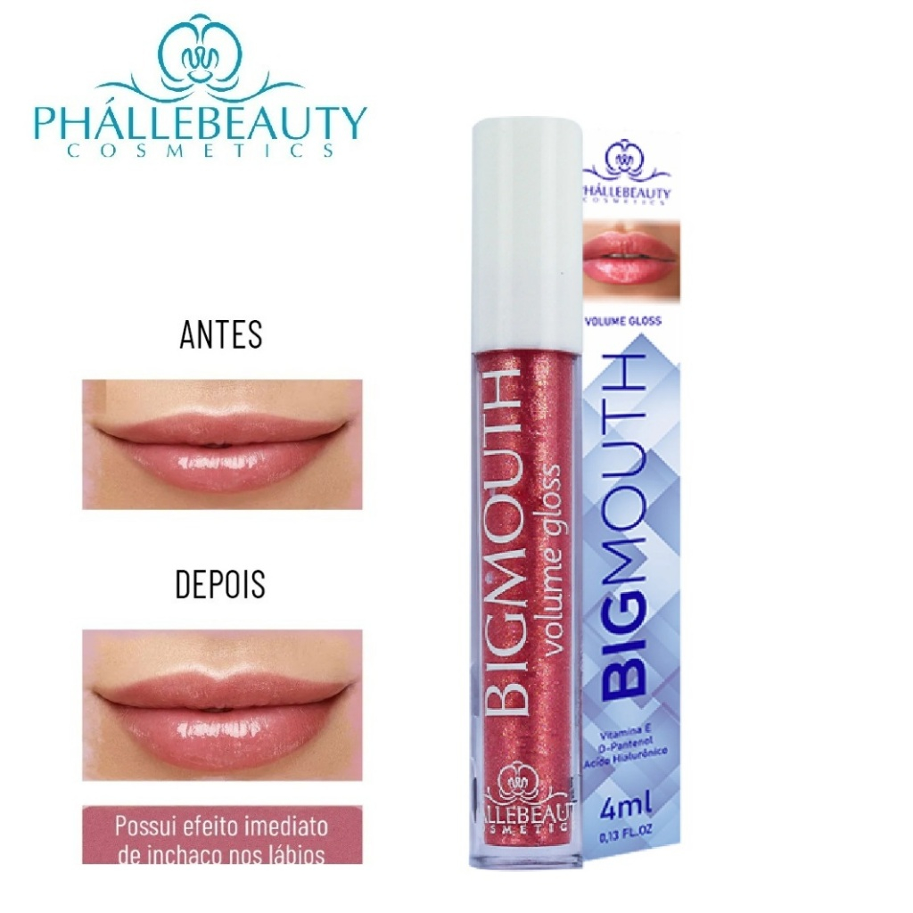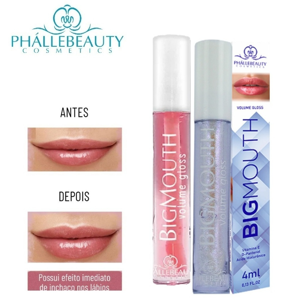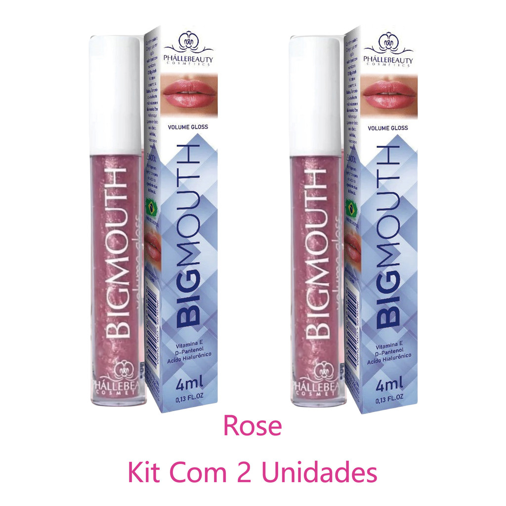 Kit 2 Gloss ou 1 unidade Big Mouth Volume PHALLEBEAUTY cor Rosa e Incolor