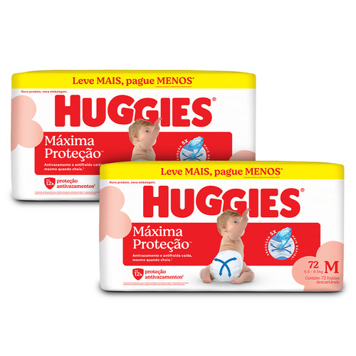 Kit 2 - Huggies Fralda Descartável Máxima Proteção M - 72 Un