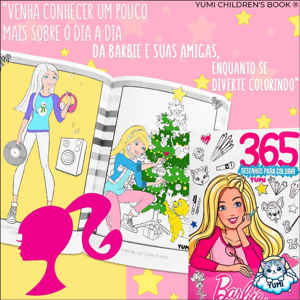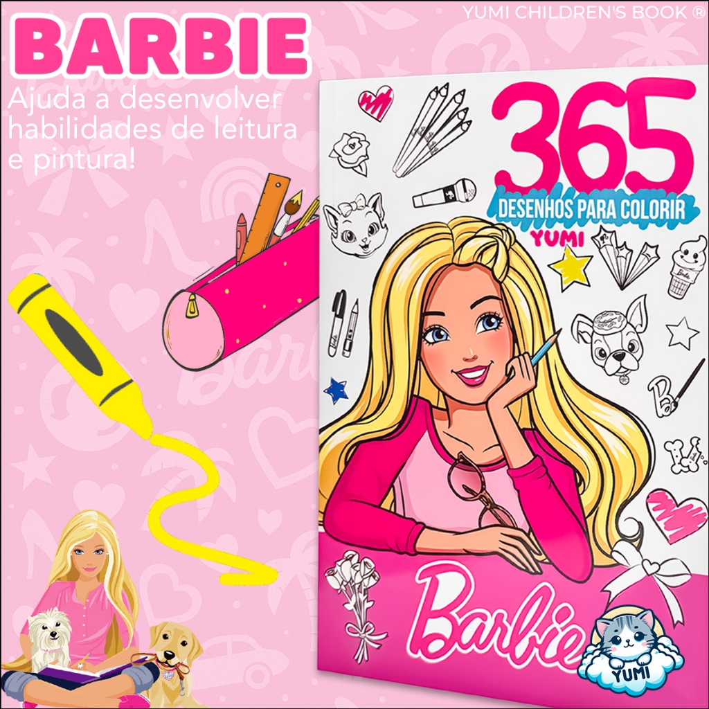 Kit 2 Livro Infantil 365 Desenhos Meninas Livro De Pintura Desenhos Para Colorir Rosa + 365 Atividades Meninas Barbie