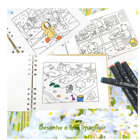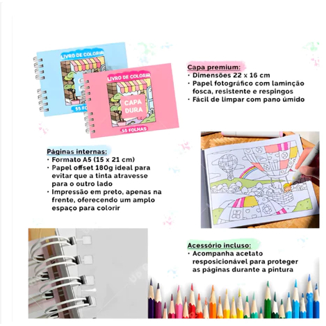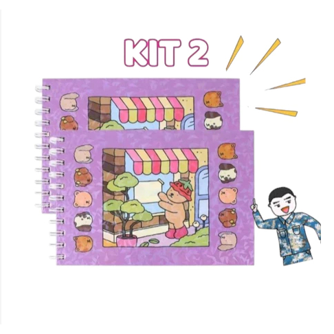 Kit 2 Livro de Colorir Capa Dura cute 50 Folhas Caderno de Desenho Pintura Coloring Book infantil -XWG