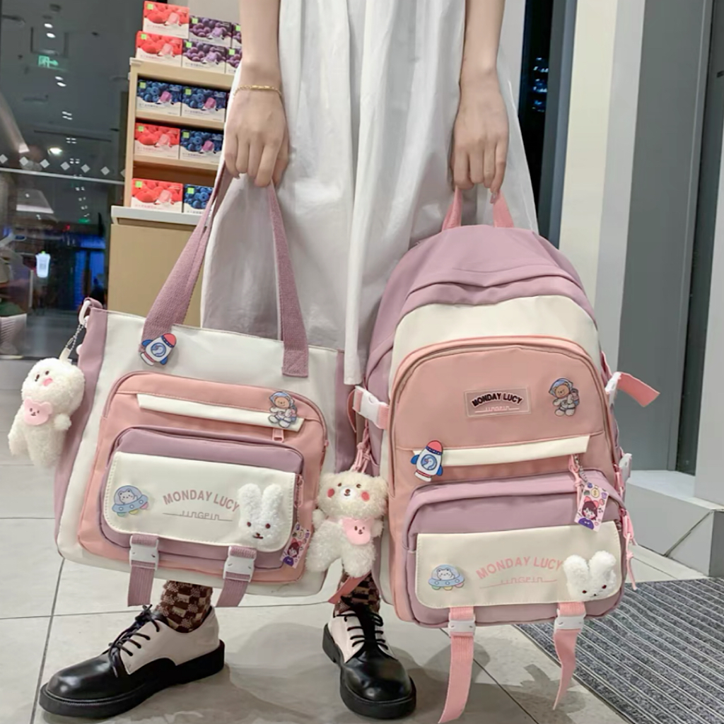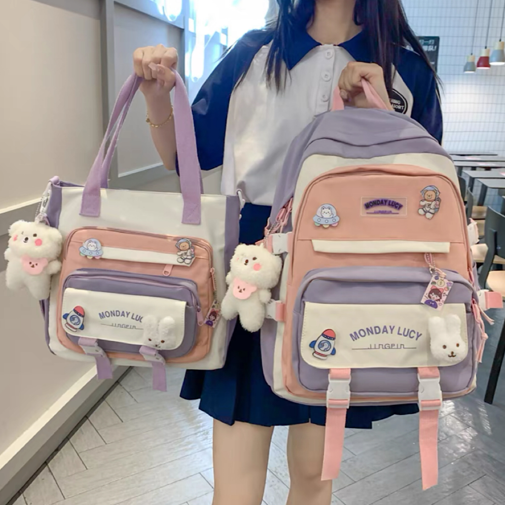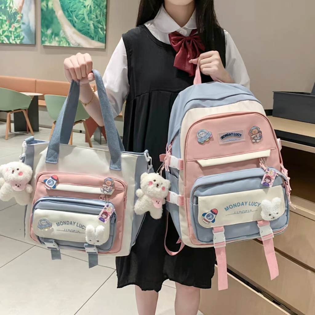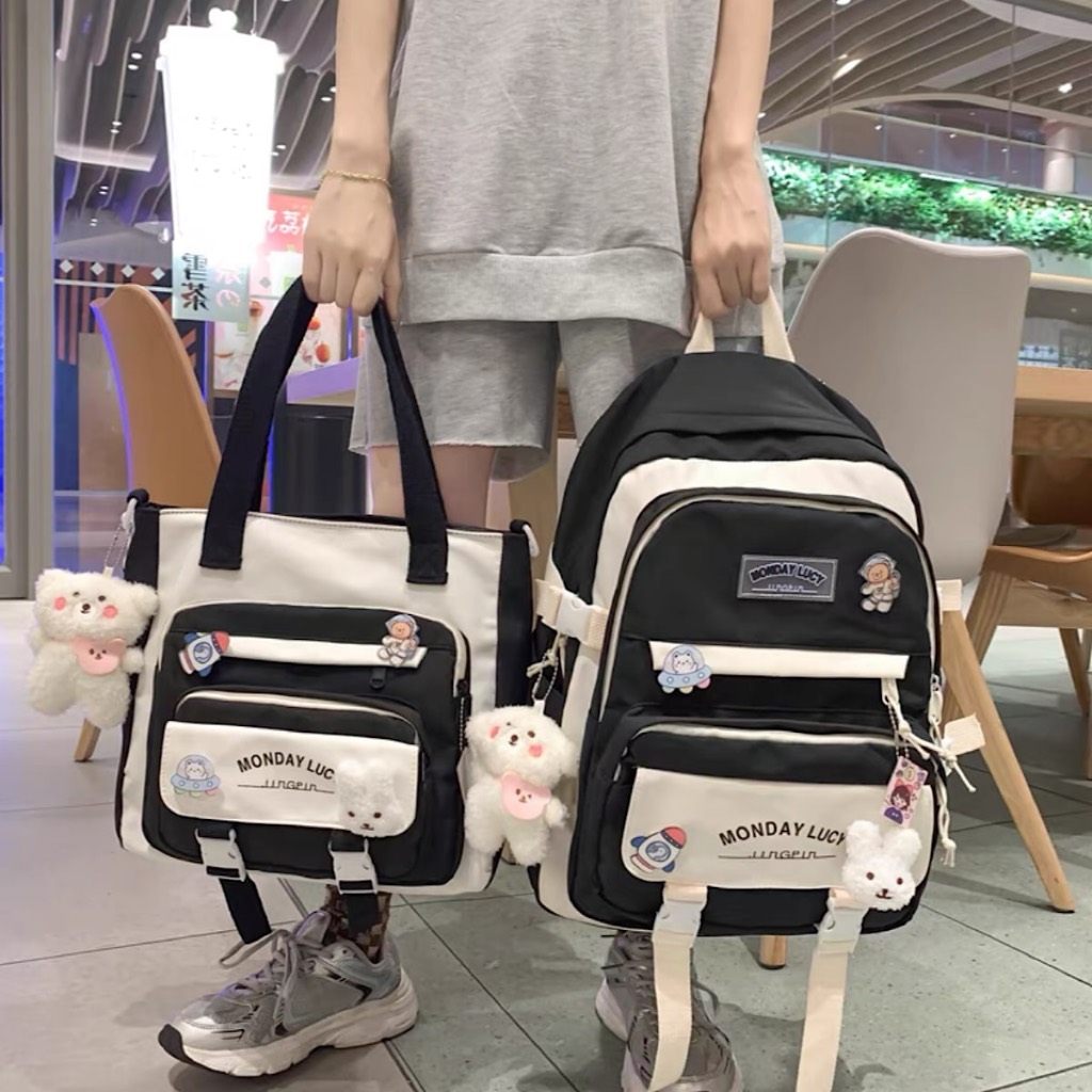 Kit 2 Mochila Bolsa Feminina Masculina Para Escolar Viajar Estilo Multineos Comercio