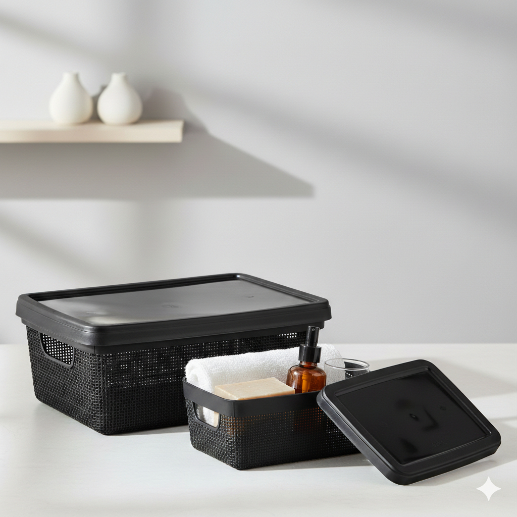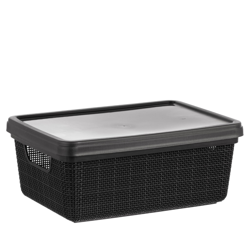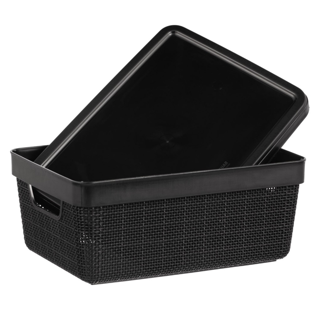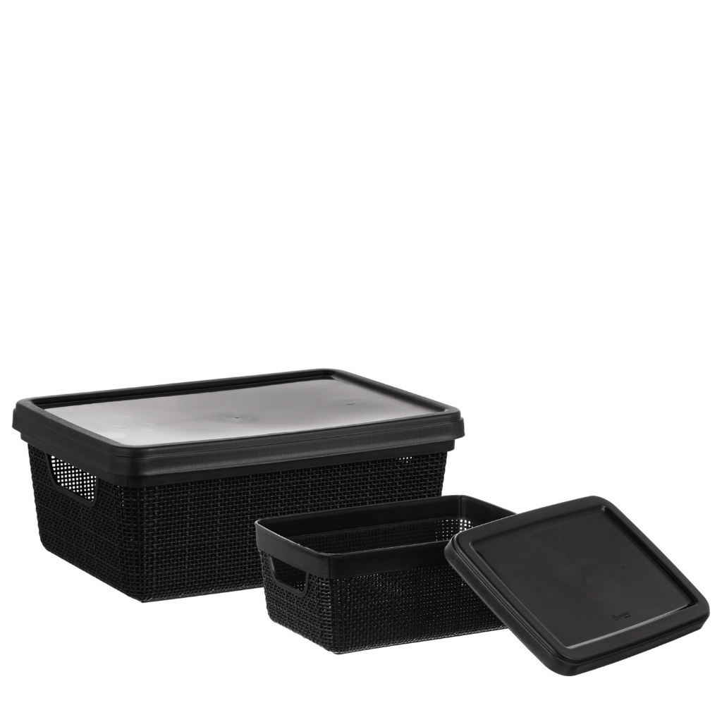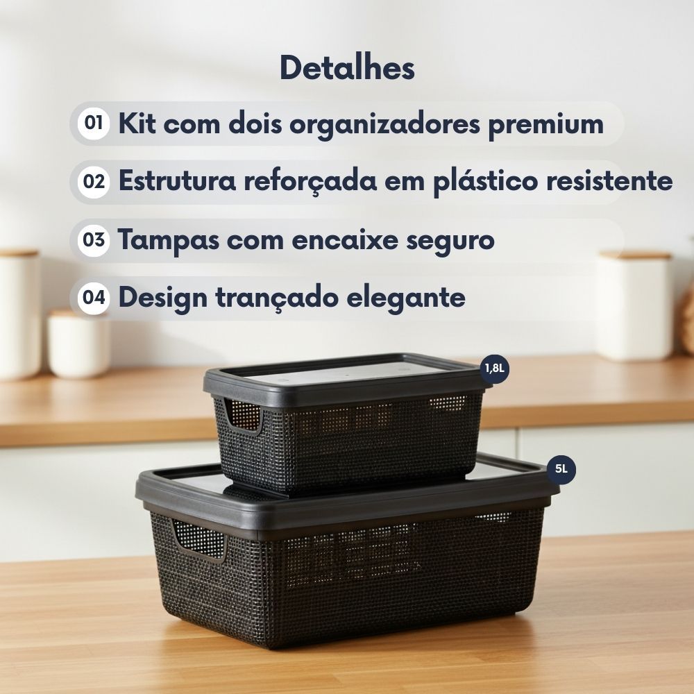 Kit 2 Organizadores com Tampa 1,8L + 5L Plástico Textura Juta Caixa Jaguar Para Guardar e Organizar Ambientes