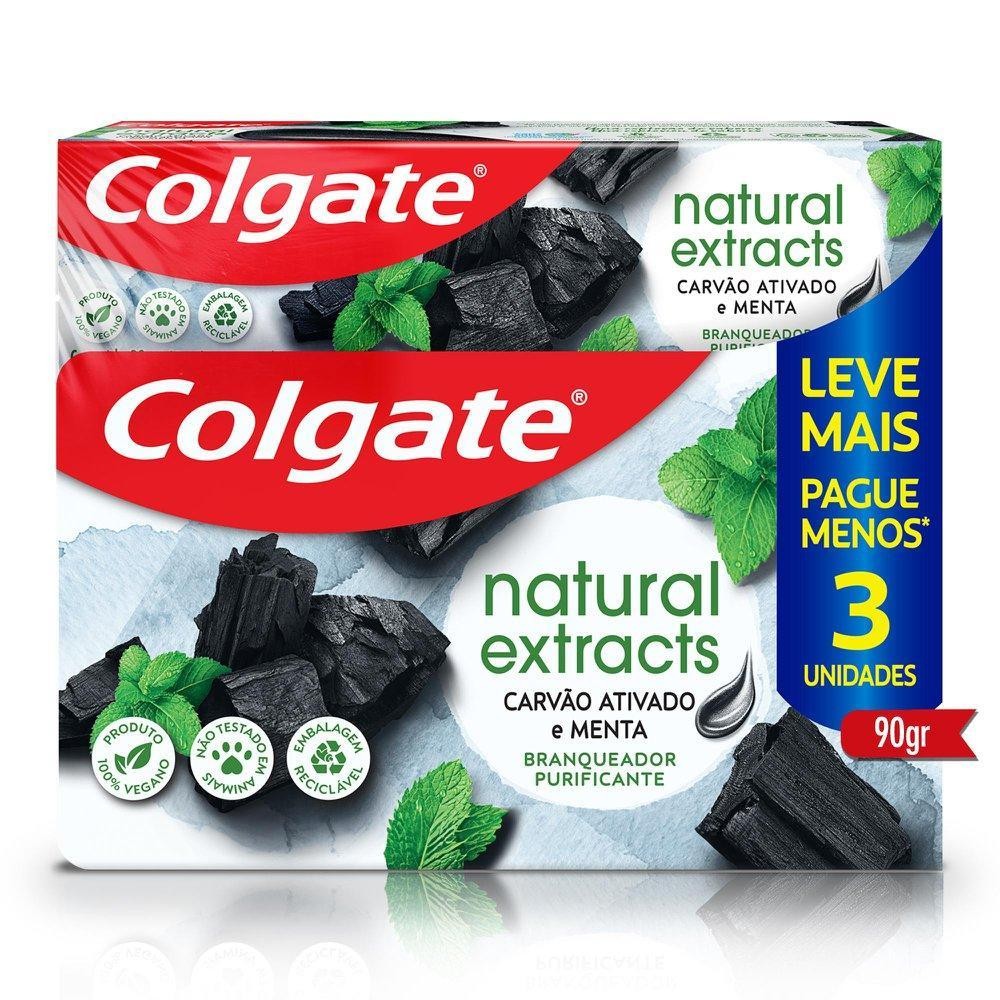 Kit 2 Pack Creme Dental Colgate Natural Extracts Carvão Ativado e Menta 6x90g