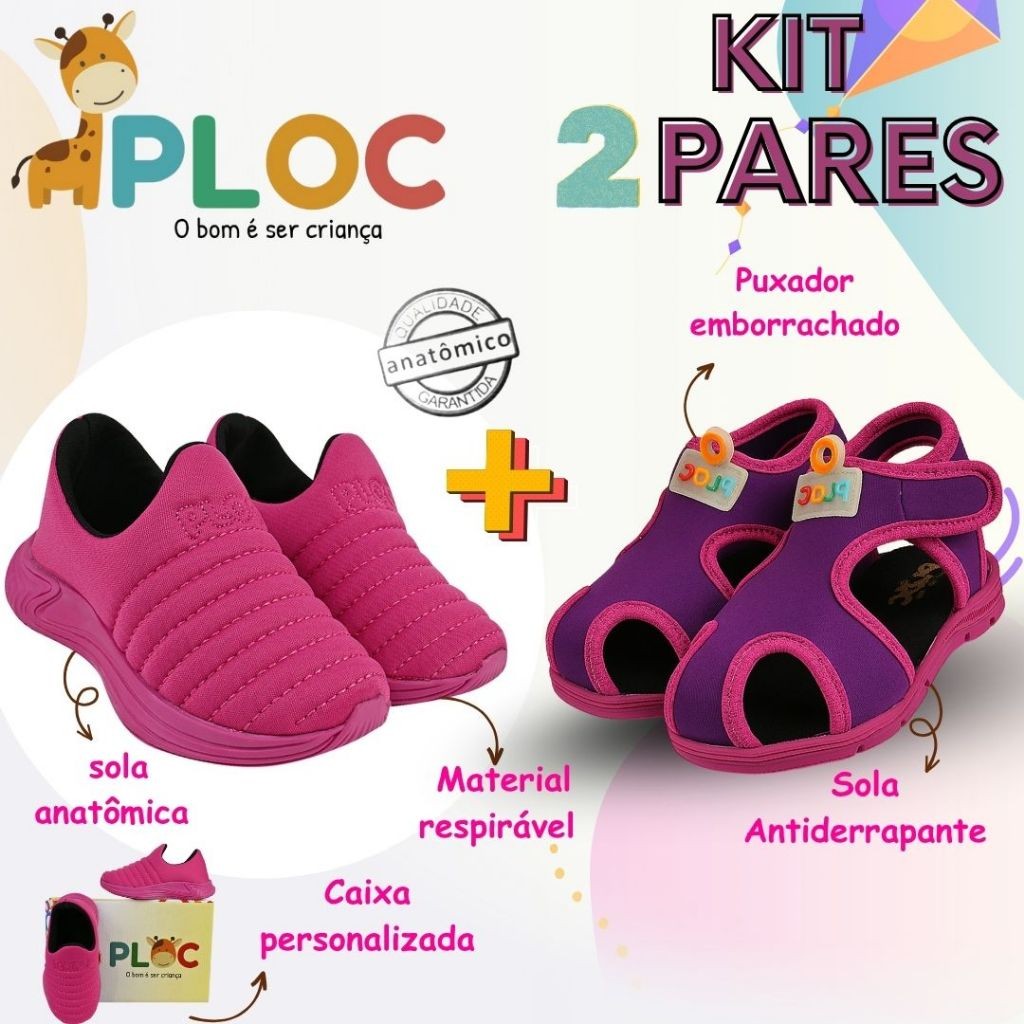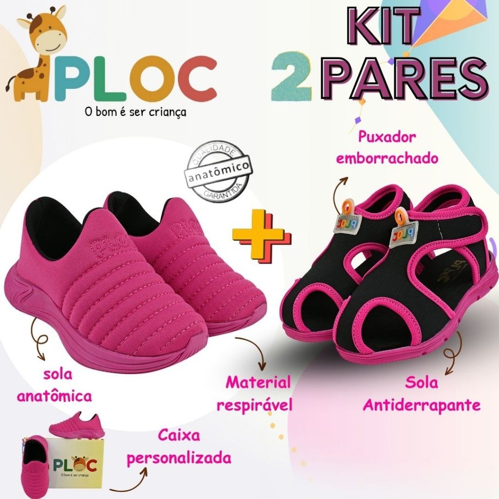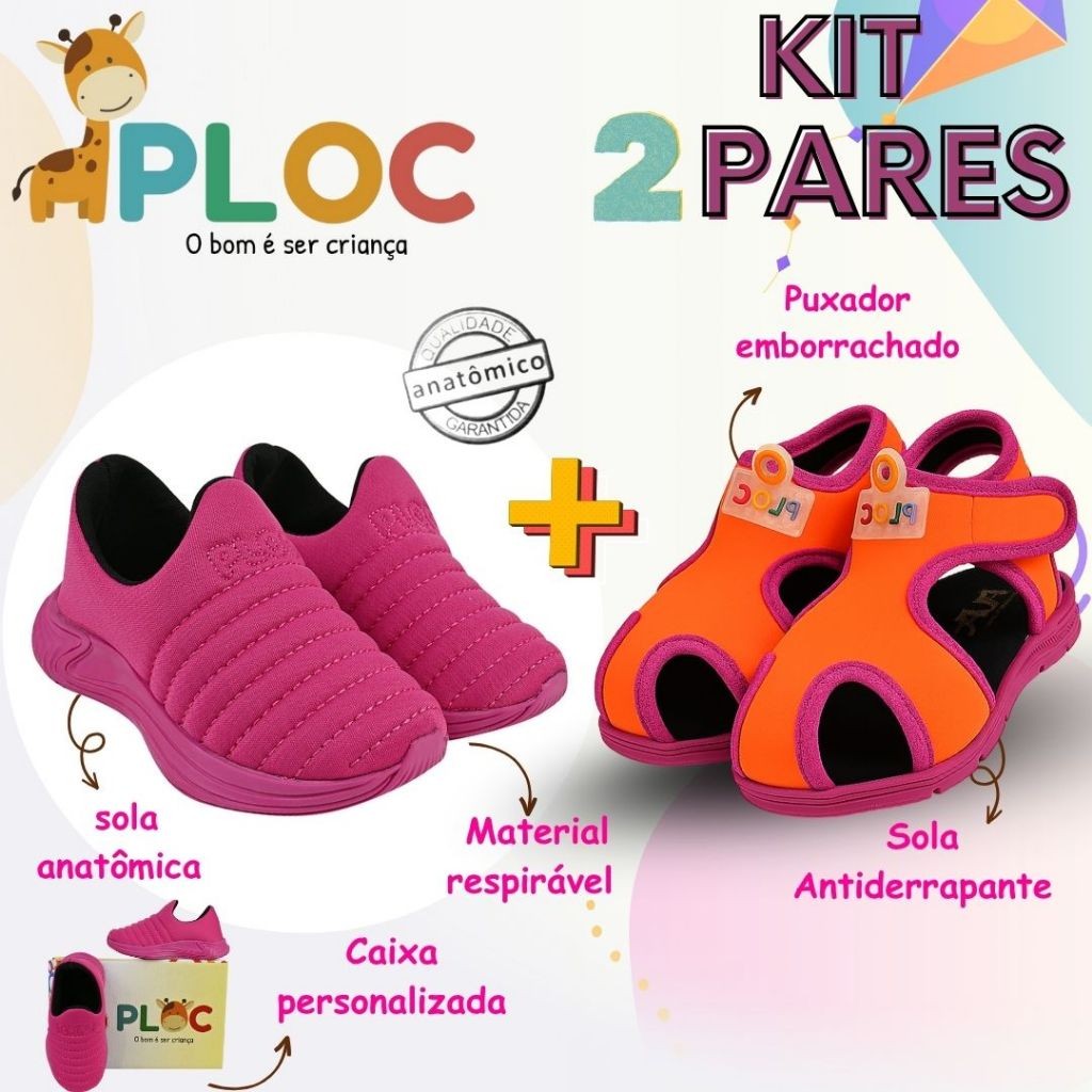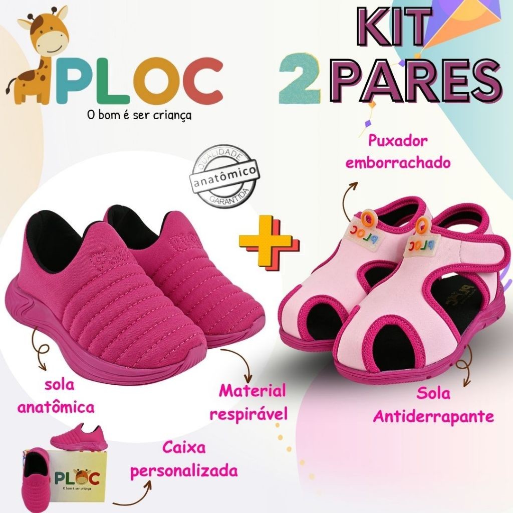 Kit 2 Pares: Calce Fácil Colors PINK sola Pink + Papete Menina Ploc Pap01