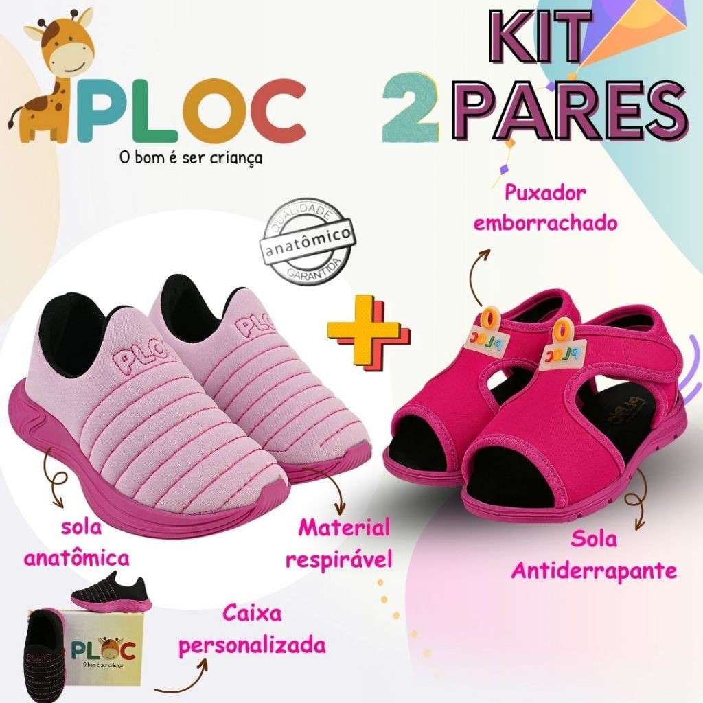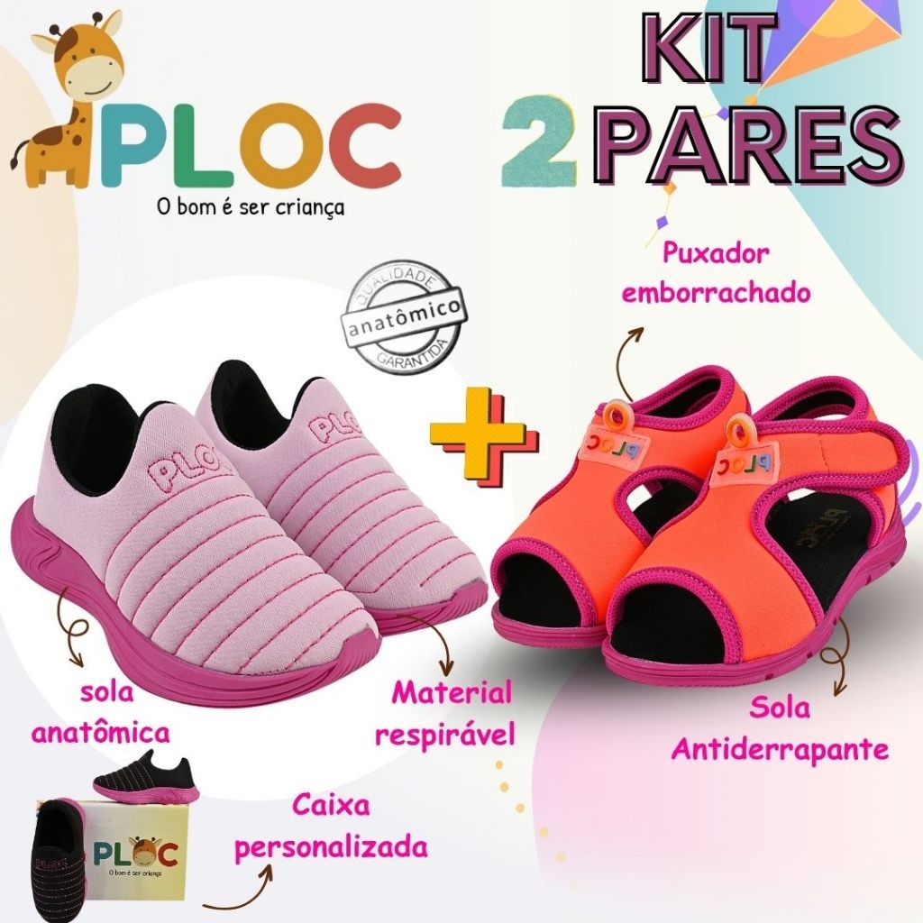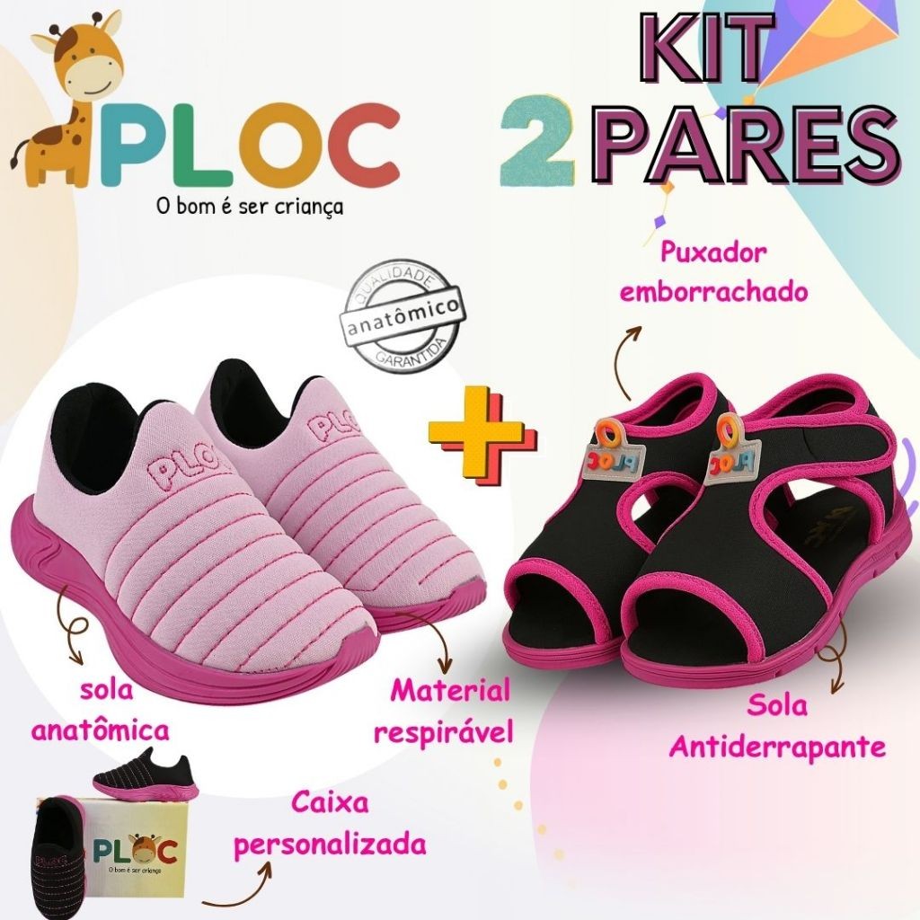Kit 2 Pares: Colors Calce Fácil Rosa sola Pink + Papete Menina Ploc Pap02