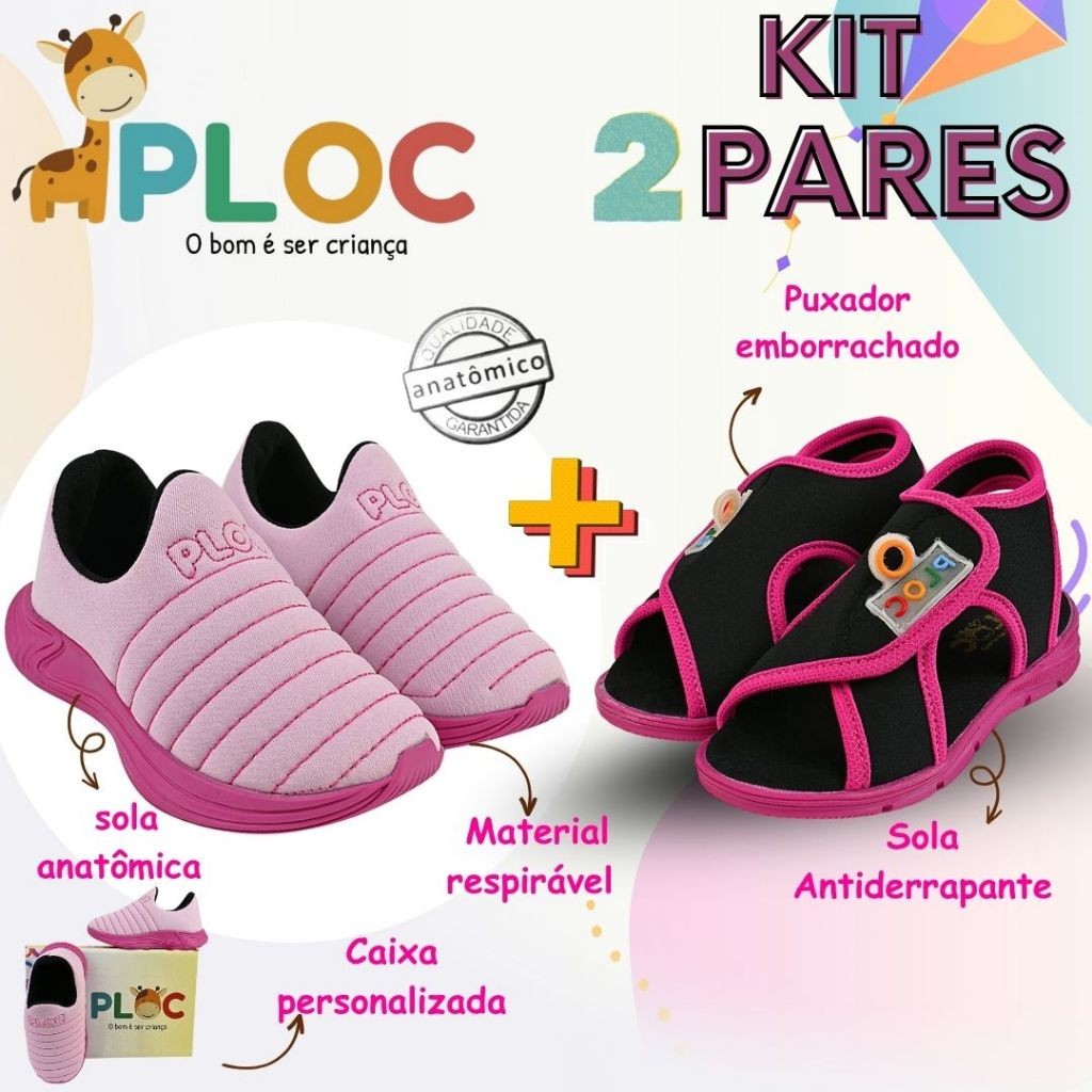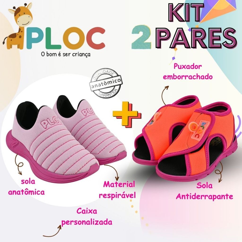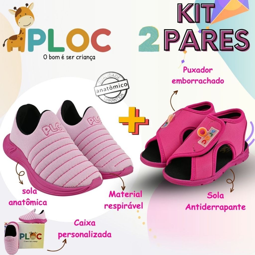 Kit 2 Pares: Colors Calce Fácil Rosa sola Pink + Papete Menina Ploc Pap03