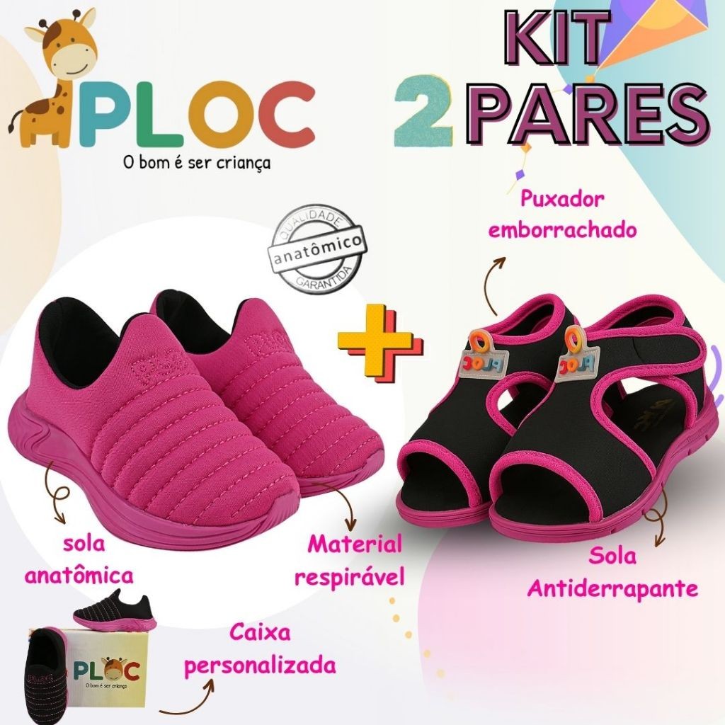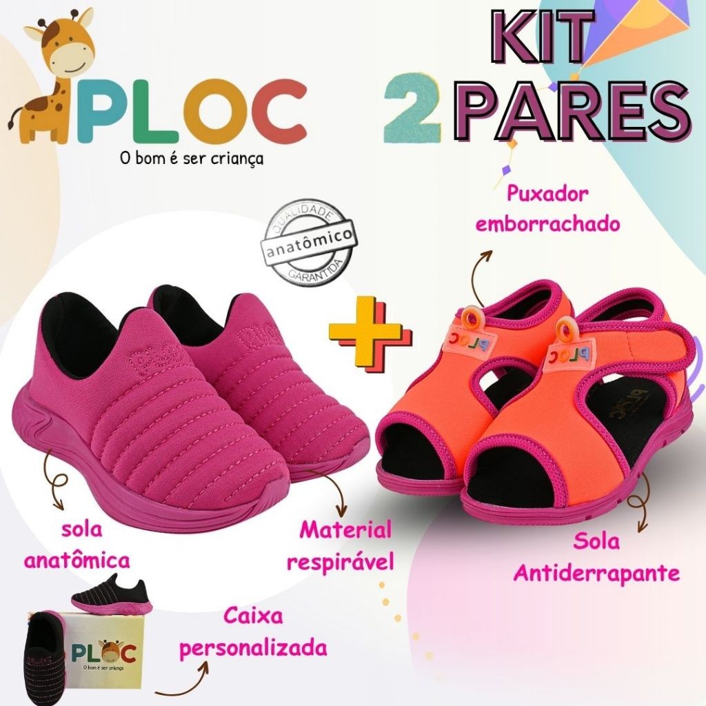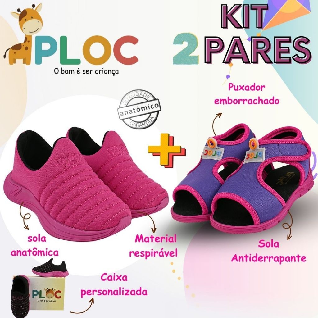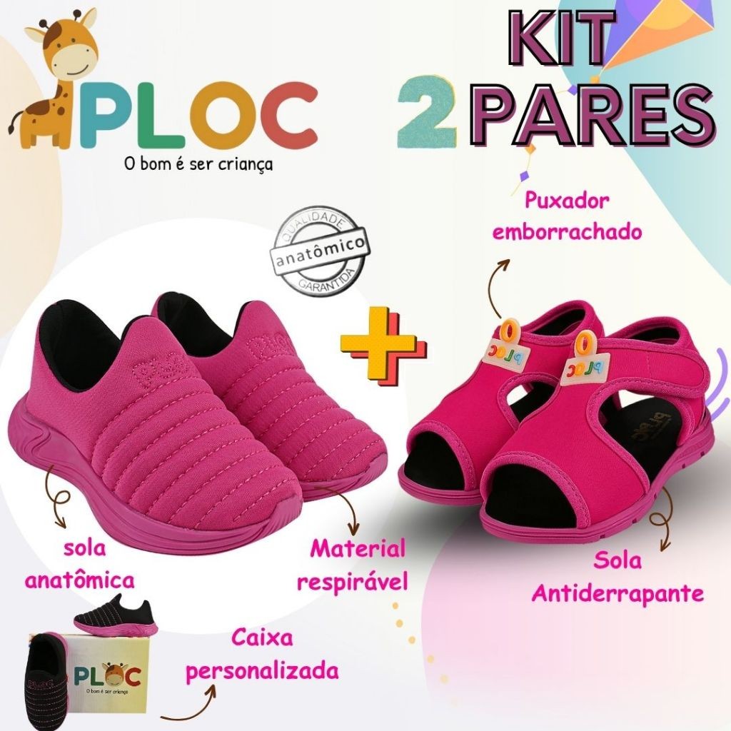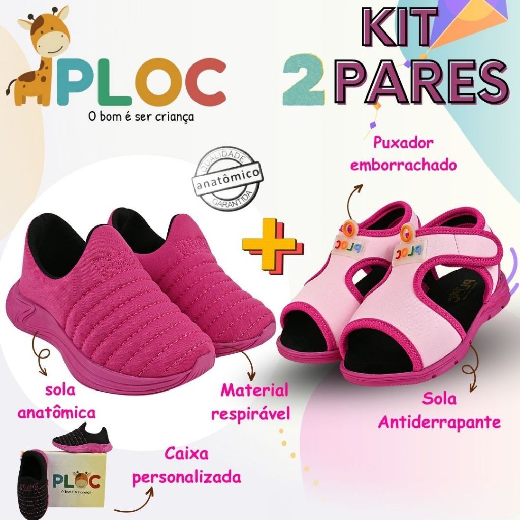 Kit 2 Pares: Tênis Calce Fácil Colors Pink/Pink + Papete Menina Ploc Pap02