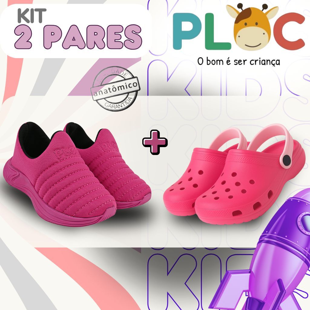 Kit 2 Pares: Tênis Calce Fácil Colors Ploc + Babuche Pink