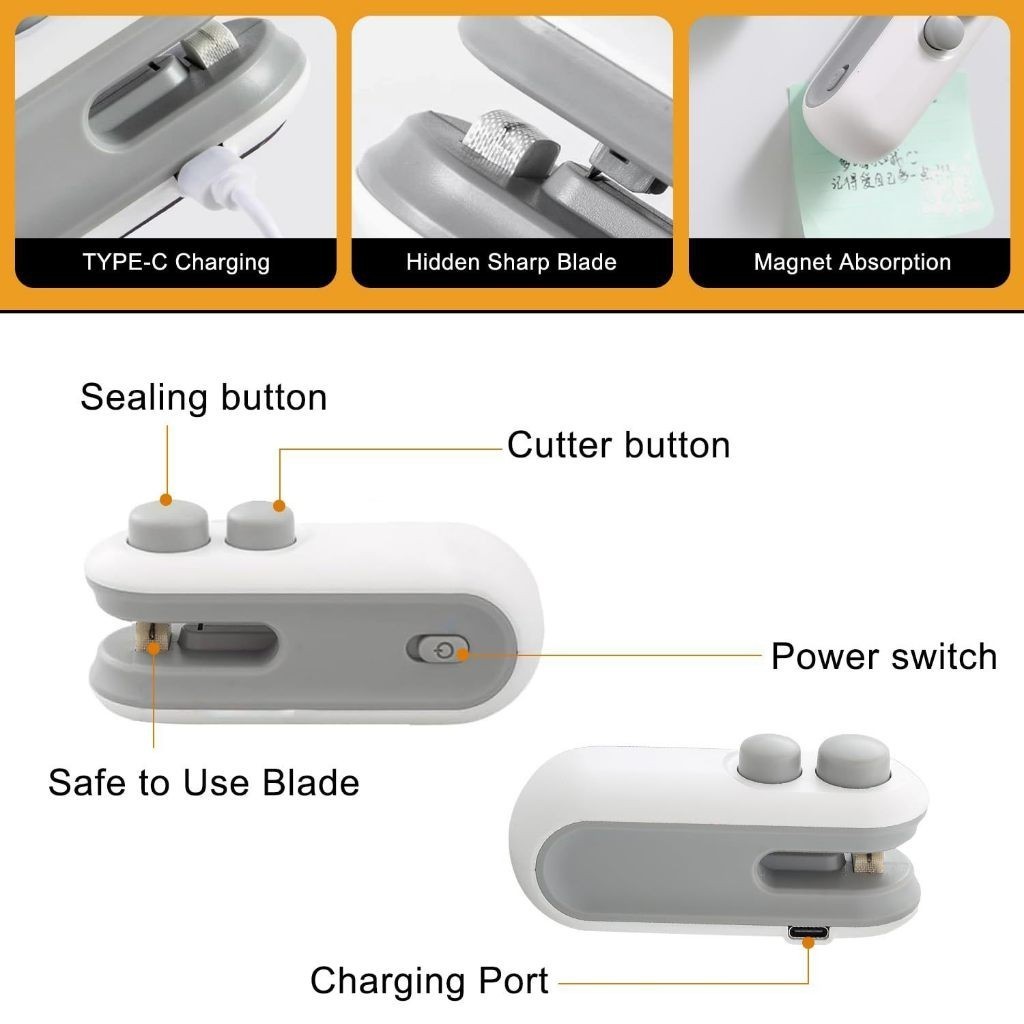 Kit 2 Peças Mini Máquina Seladora Recarregável Para Embalagens Plásticas - Selagem Rápida/ Alta Qualidade/ Promoção -WYL