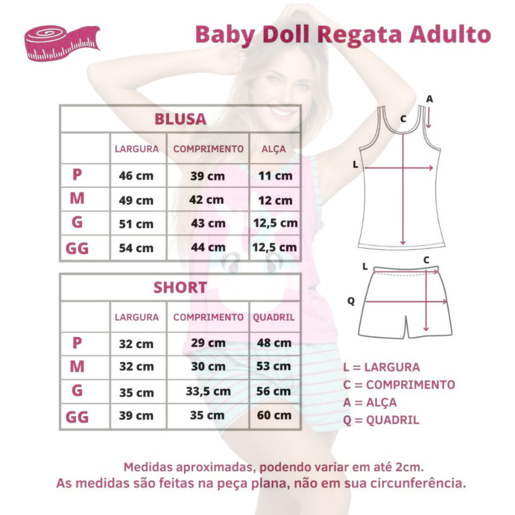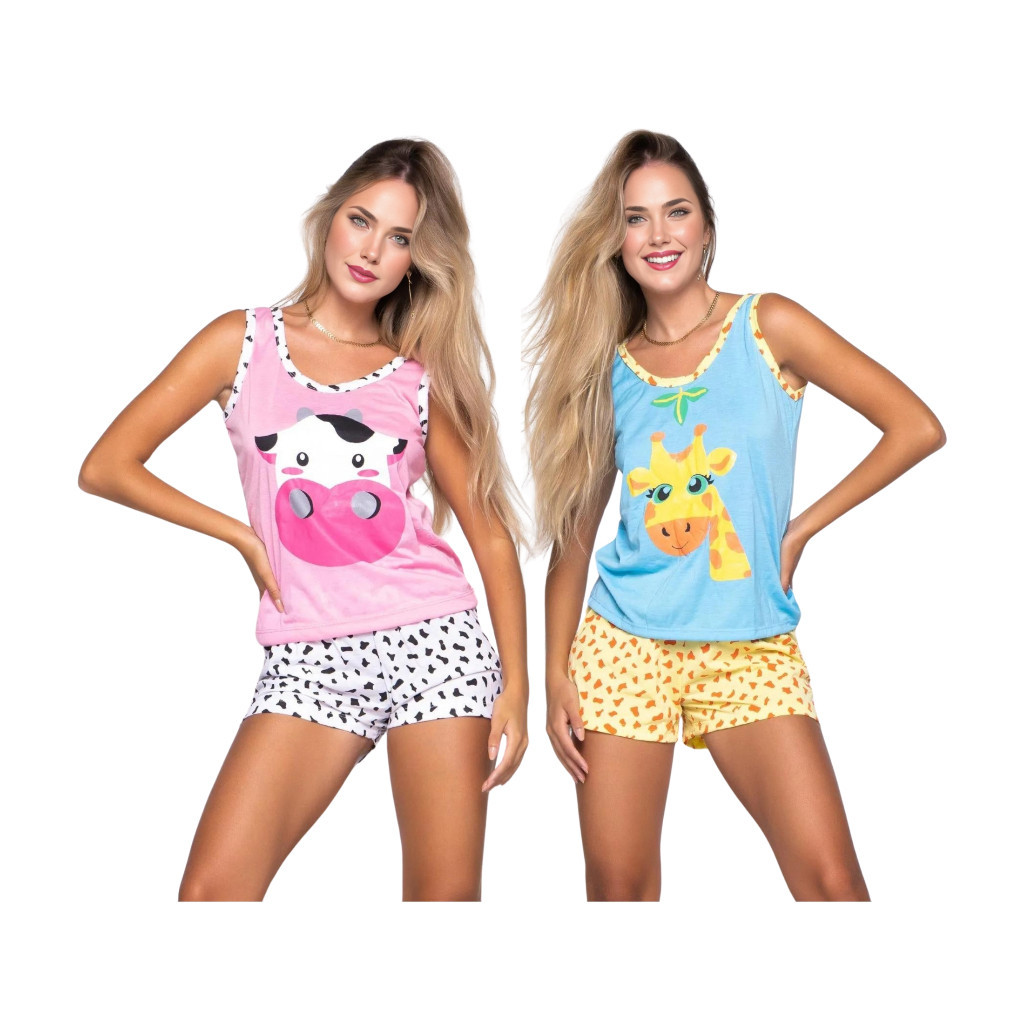 Kit 2 Pijama Adulto Baby Doll Regata Short Doll Feminino Roupa de Dormir Verão Manga Curta