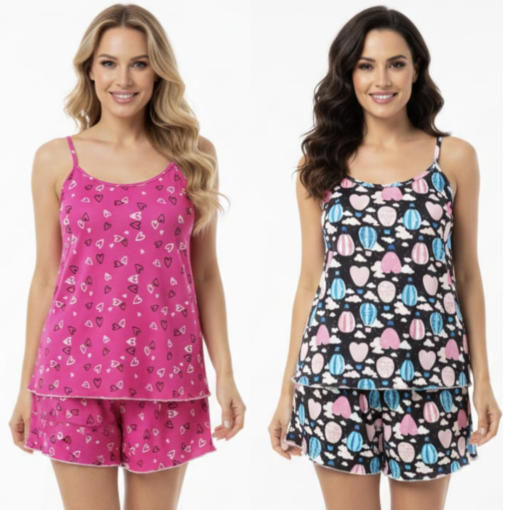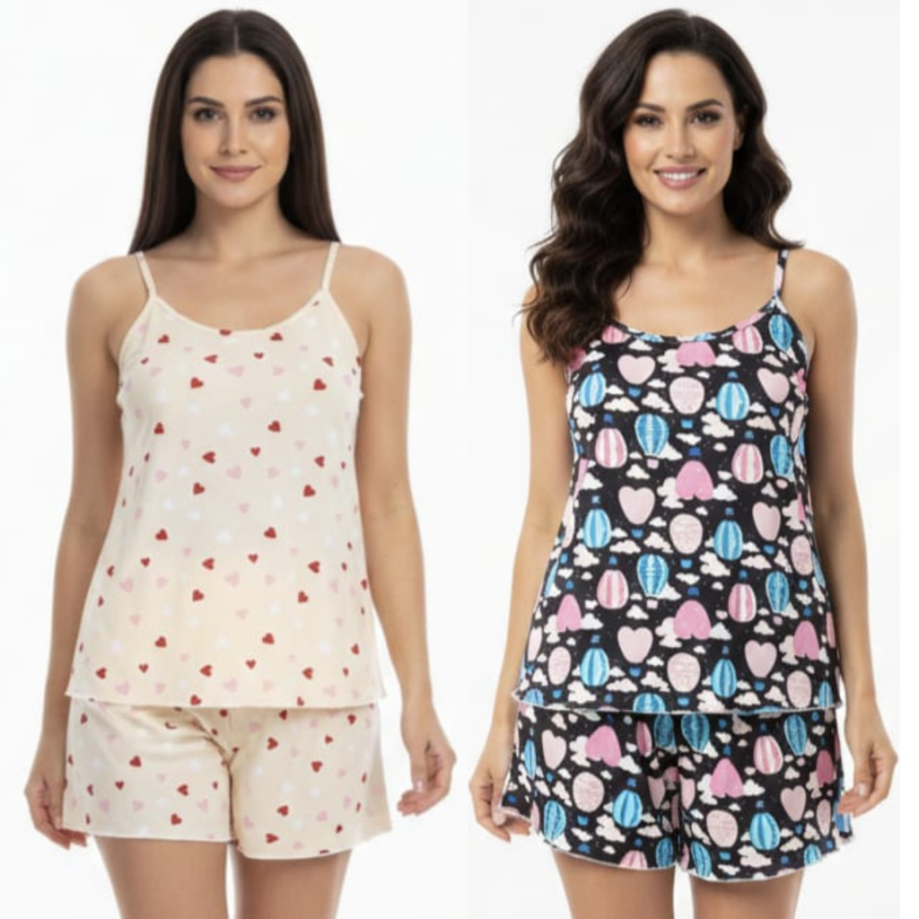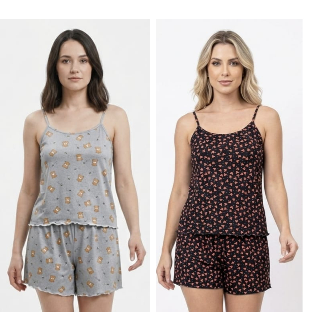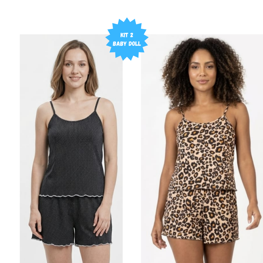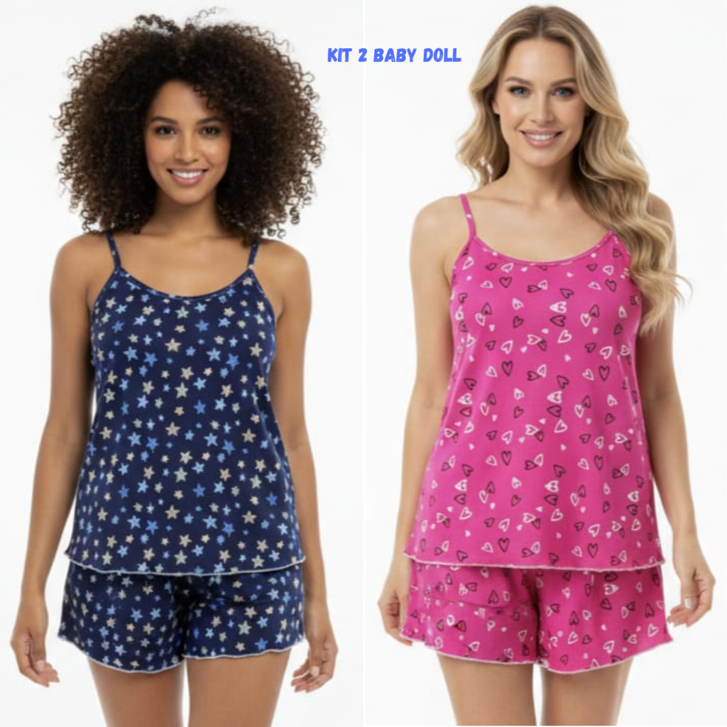 Kit 2 Pijama Baby Doll Feminino em Malha Suede / Conjunto Feminino Short Doll Confortavel Feminino Pijamas