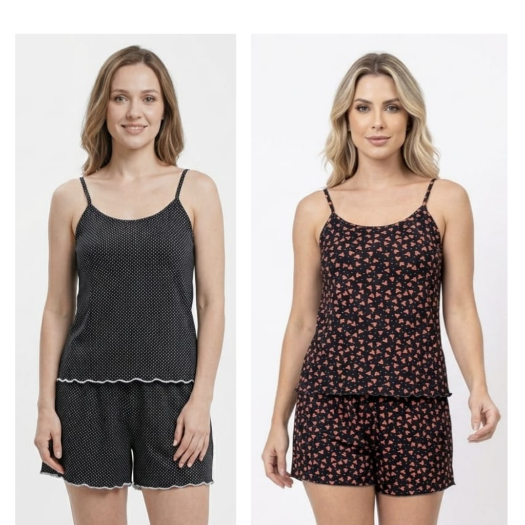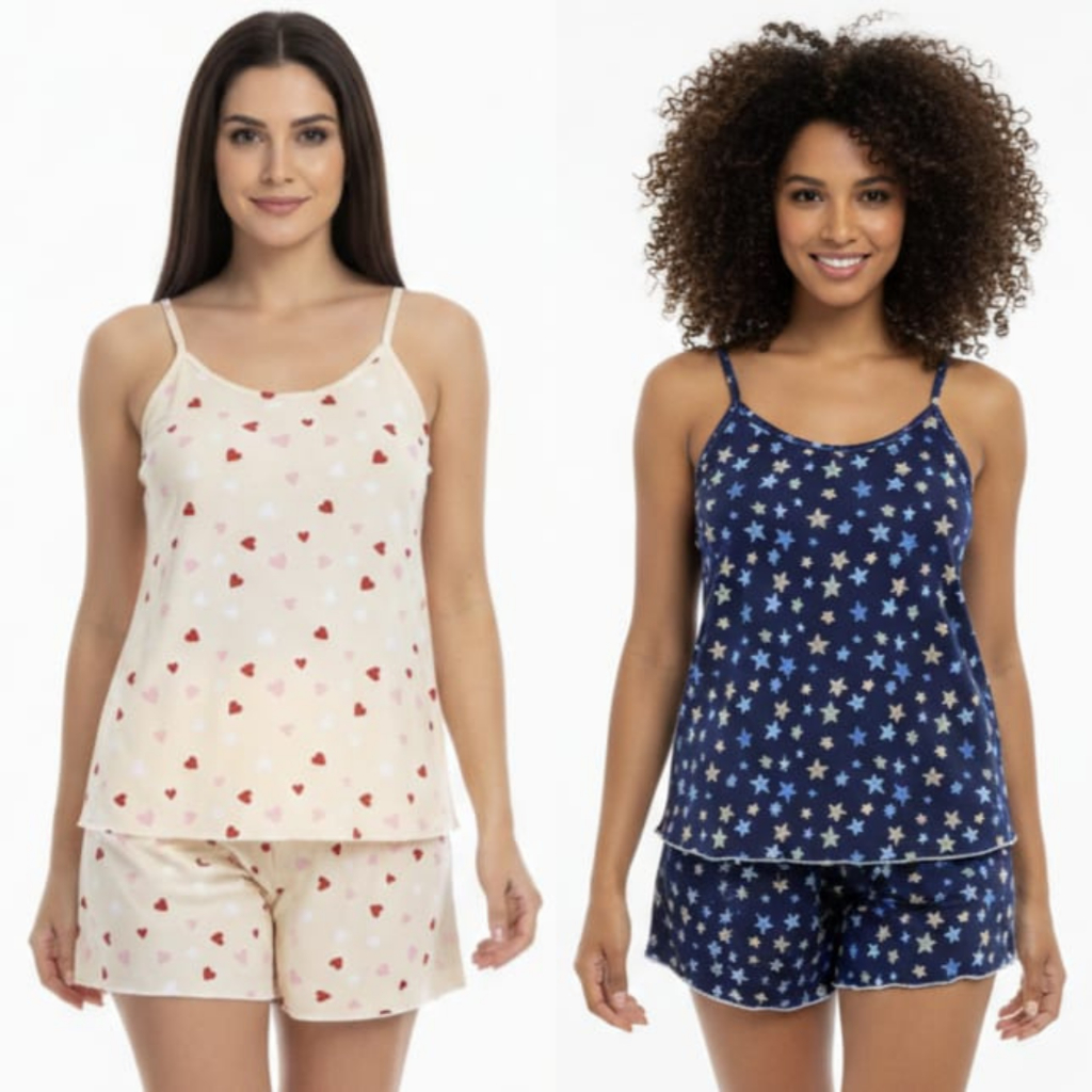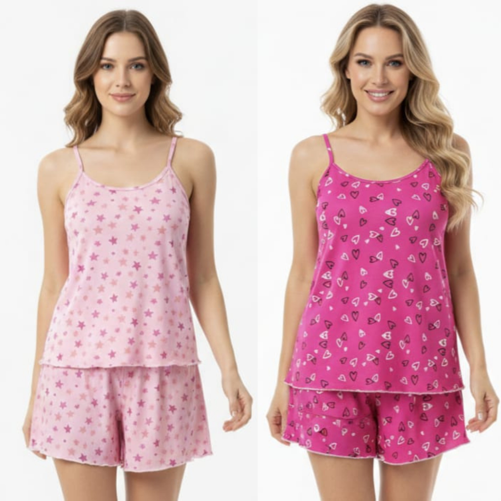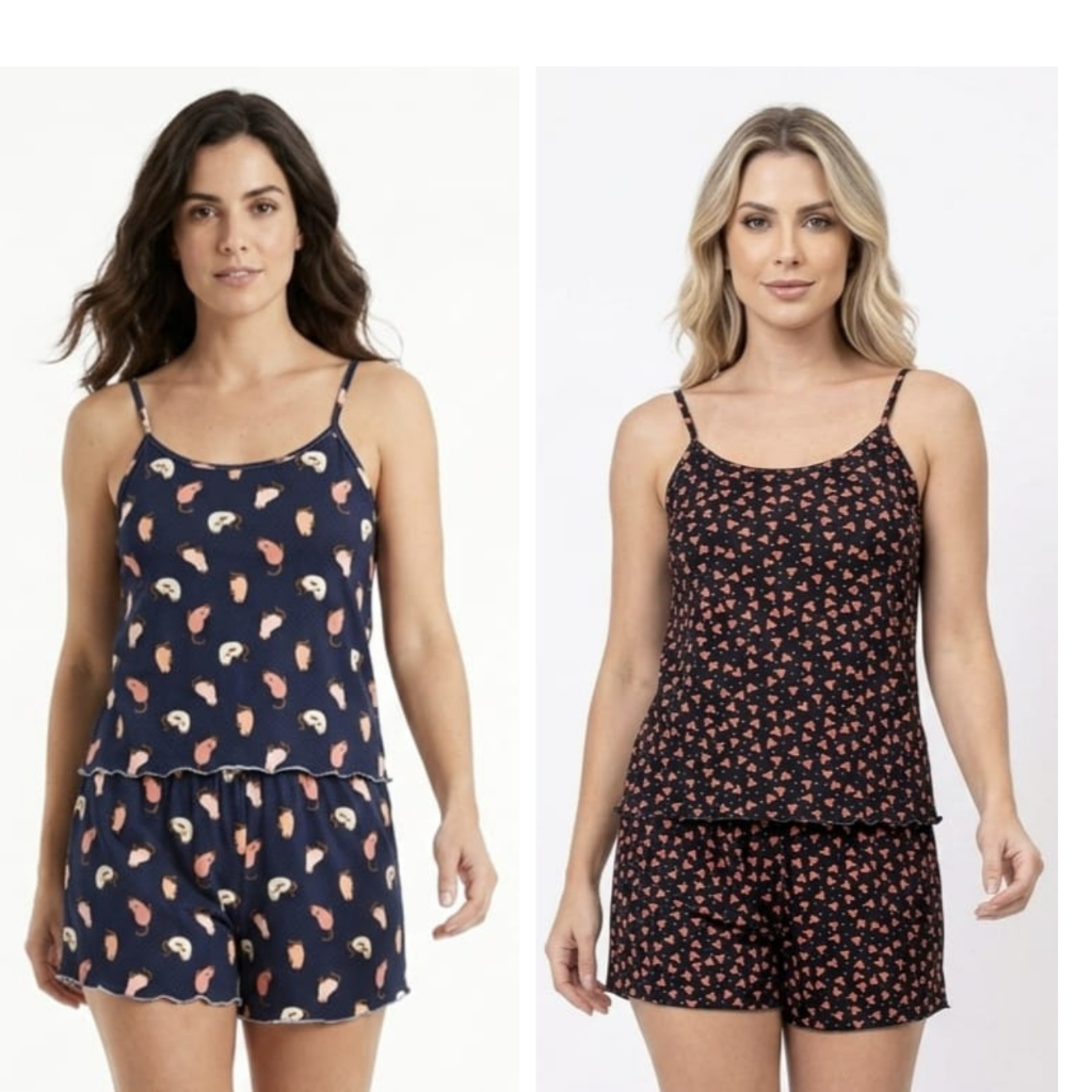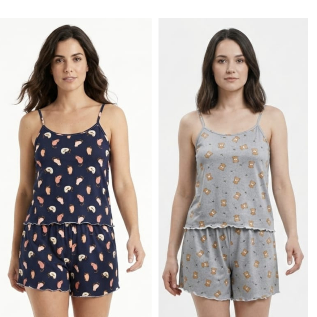 Kit 2 Pijama Baby Doll Feminino em Malha Suede / Conjunto Feminino Short Doll Confortavel Feminino Pijamas