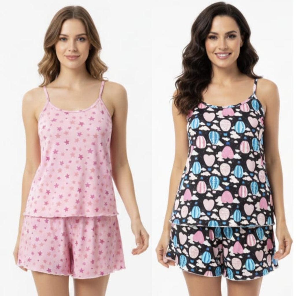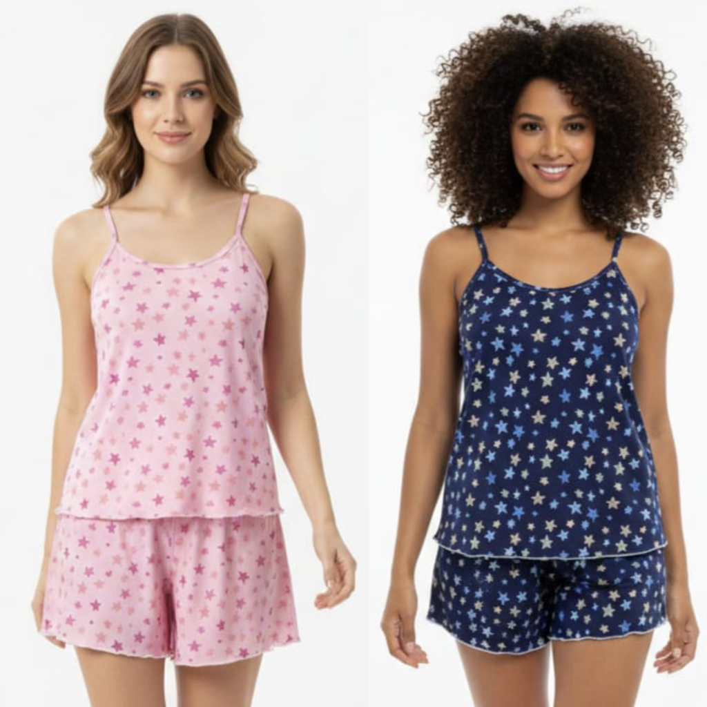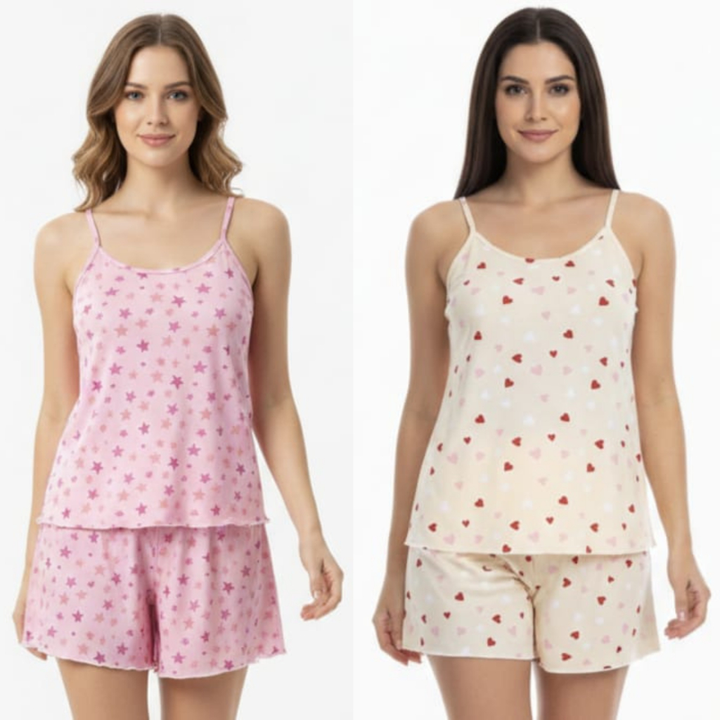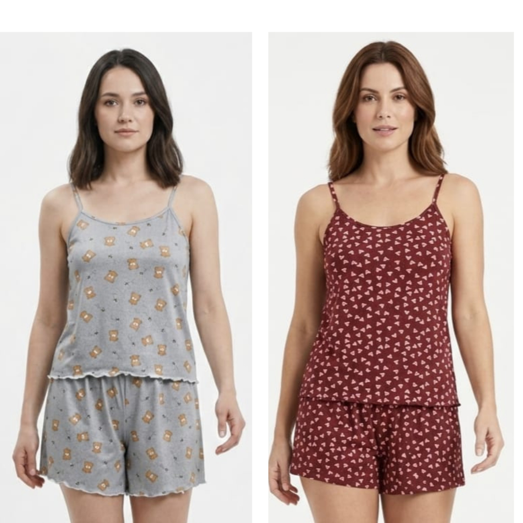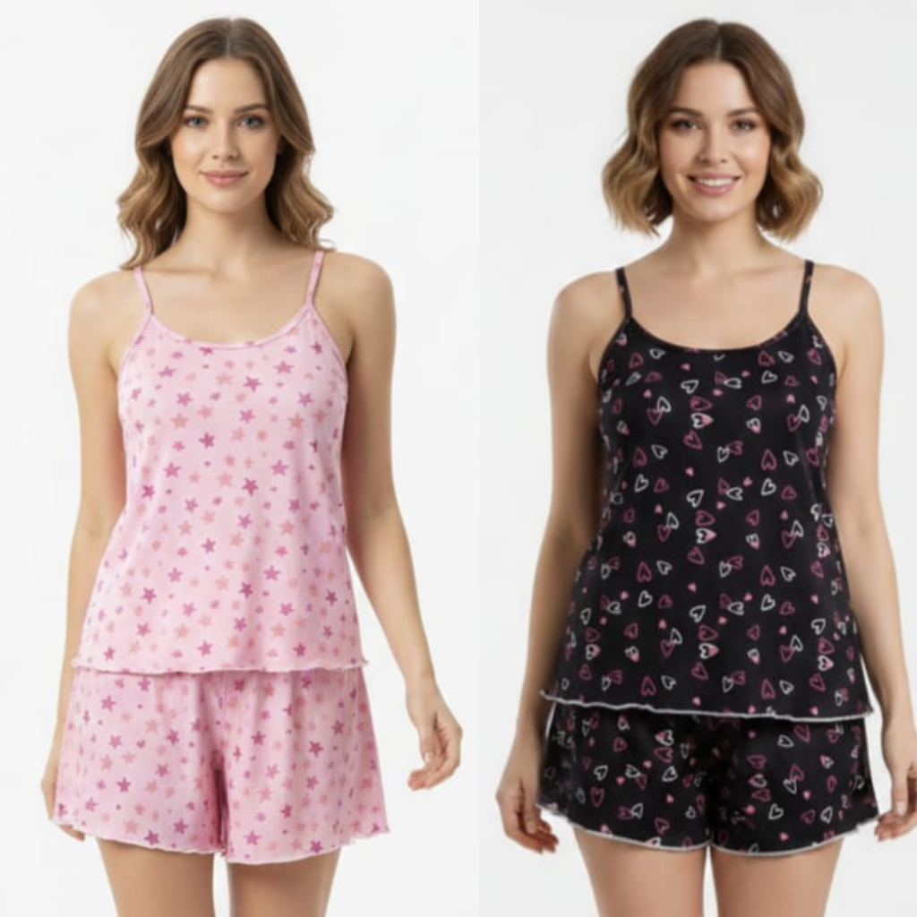 Kit 2 Pijama Baby Doll Feminino em Malha Suede / Conjunto Feminino Short Doll Confortavel Feminino Pijamas