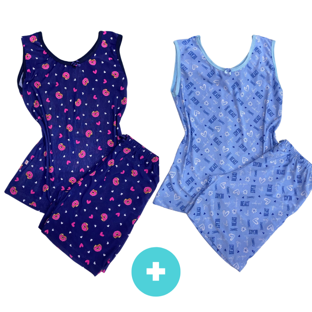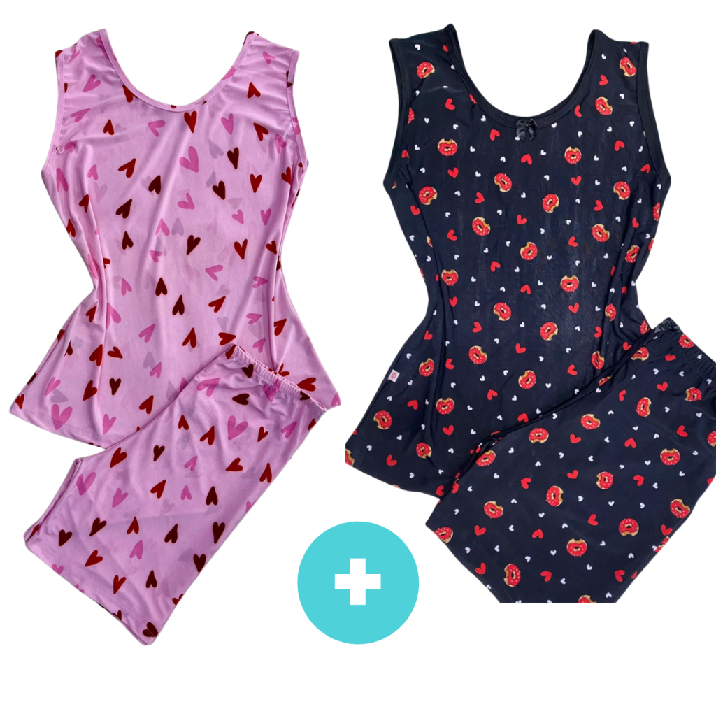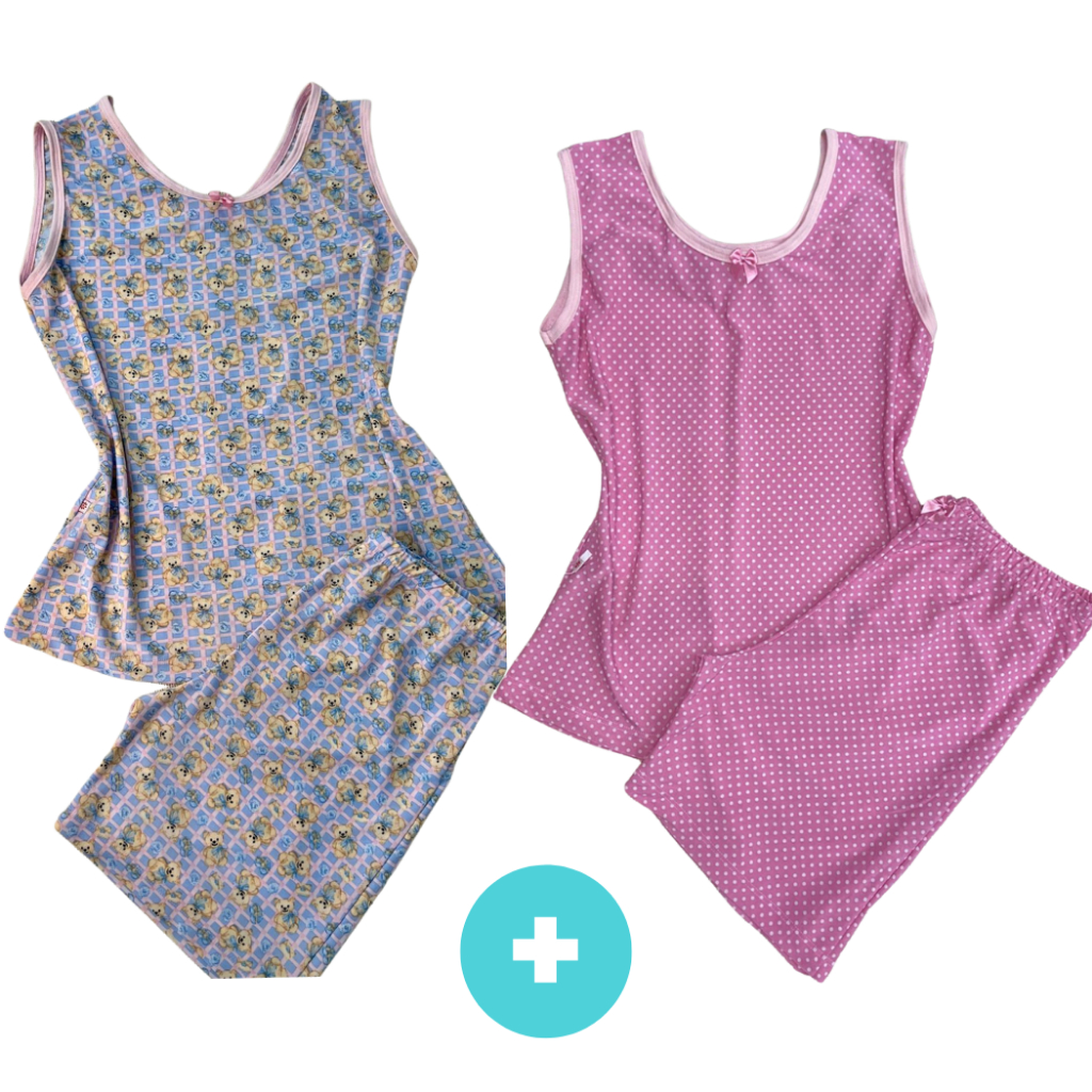 Kit 2 Pijama Feminino Meia Coxa Pescador babyDoll Liganete conforto barato Malha Fresquinha Short Doll Camiseta Feminina