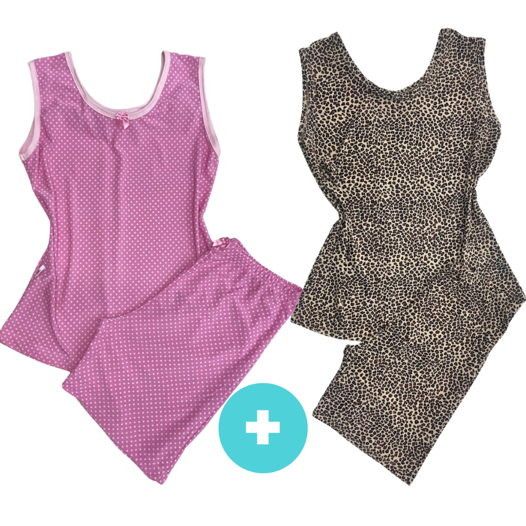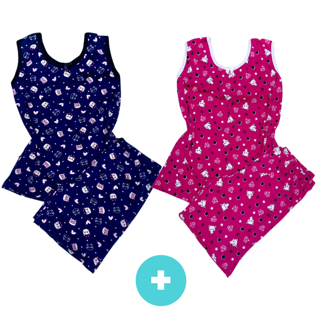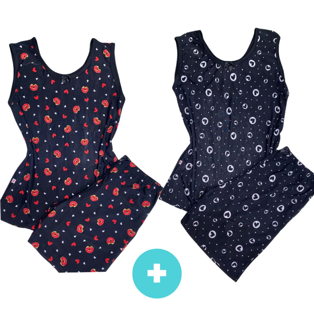 Kit 2 Pijama Feminino Meia Coxa Pescador babyDoll Liganete conforto barato Malha Fresquinha Short Doll Camiseta Feminina