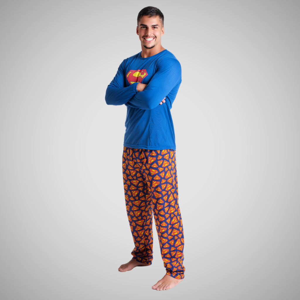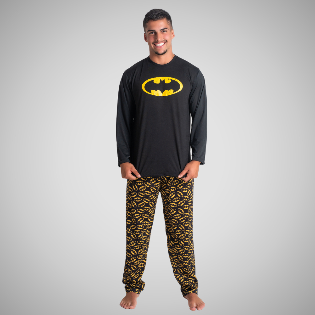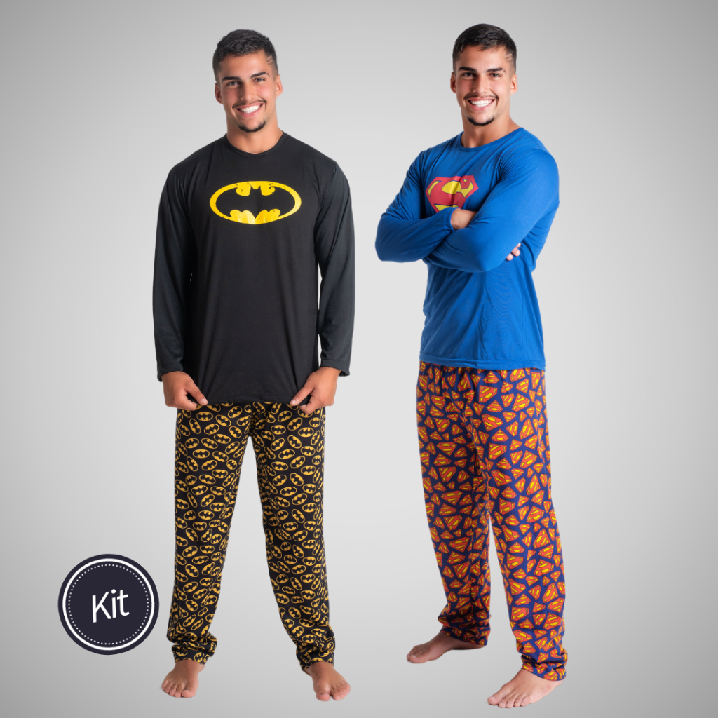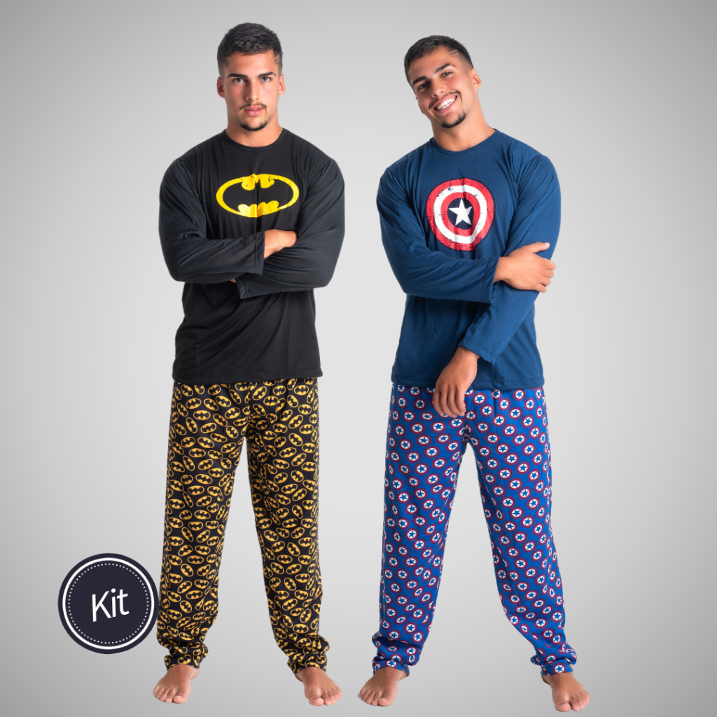 Kit 2 Pijama Longo Herói Estampado Linha Noite Inverno Confortável Adulto Masculino 326