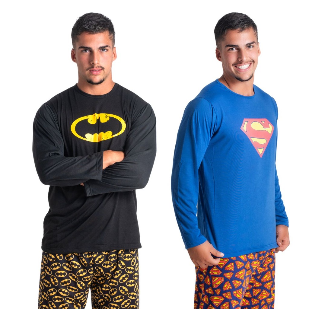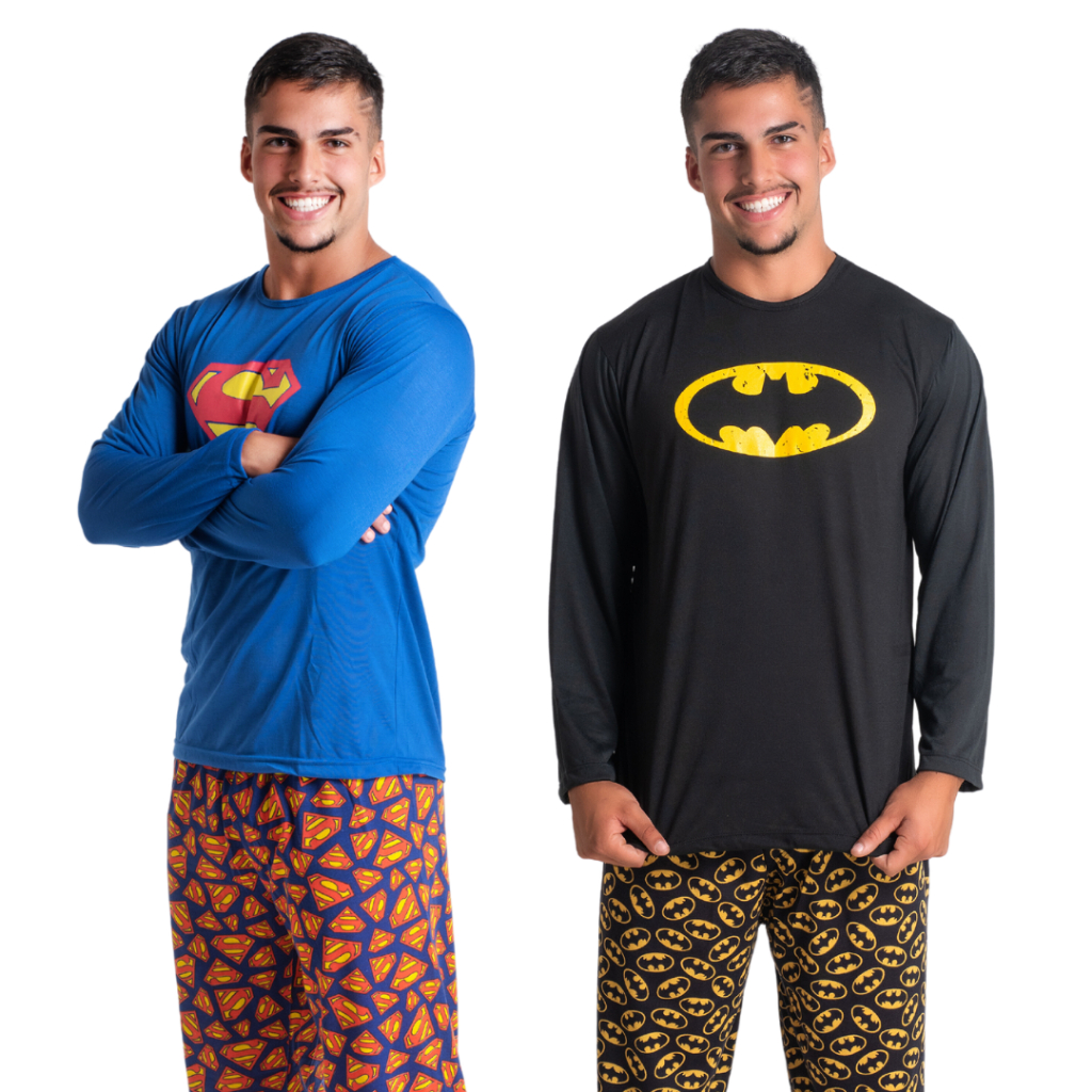 Kit 2 Pijama Masculino Estampa Super Herói Adulto Conjunto Longo 326