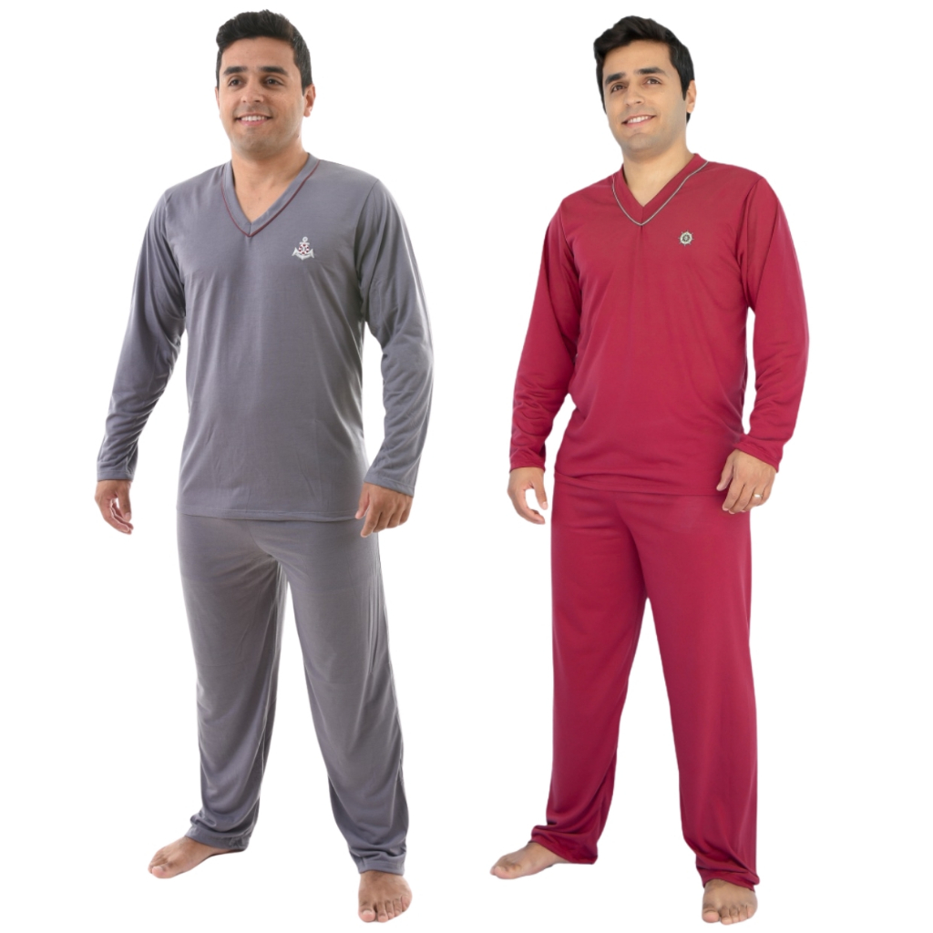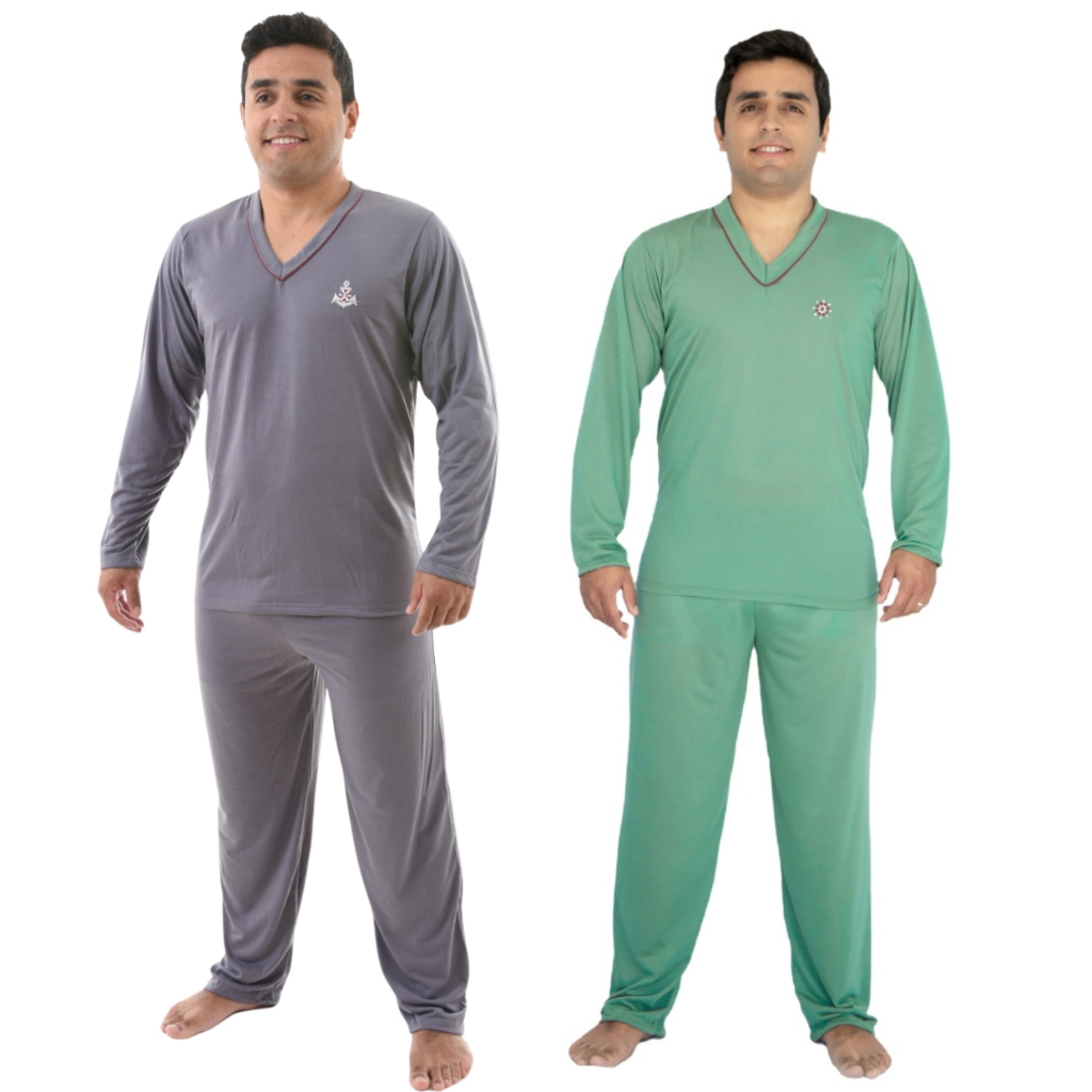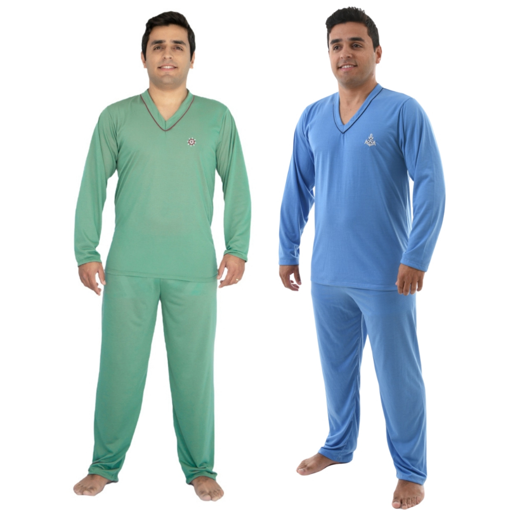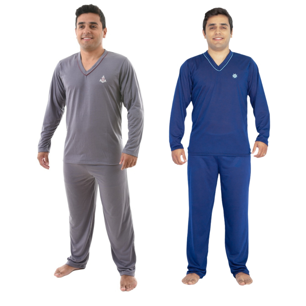 Kit 2 Pijama Masculino Longo Adulto Blusa Manga Comprida e Calça Inverno Noite