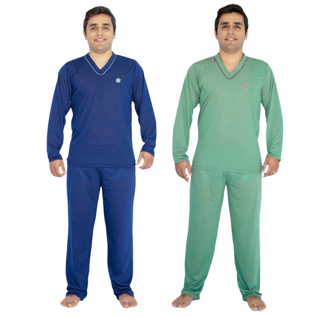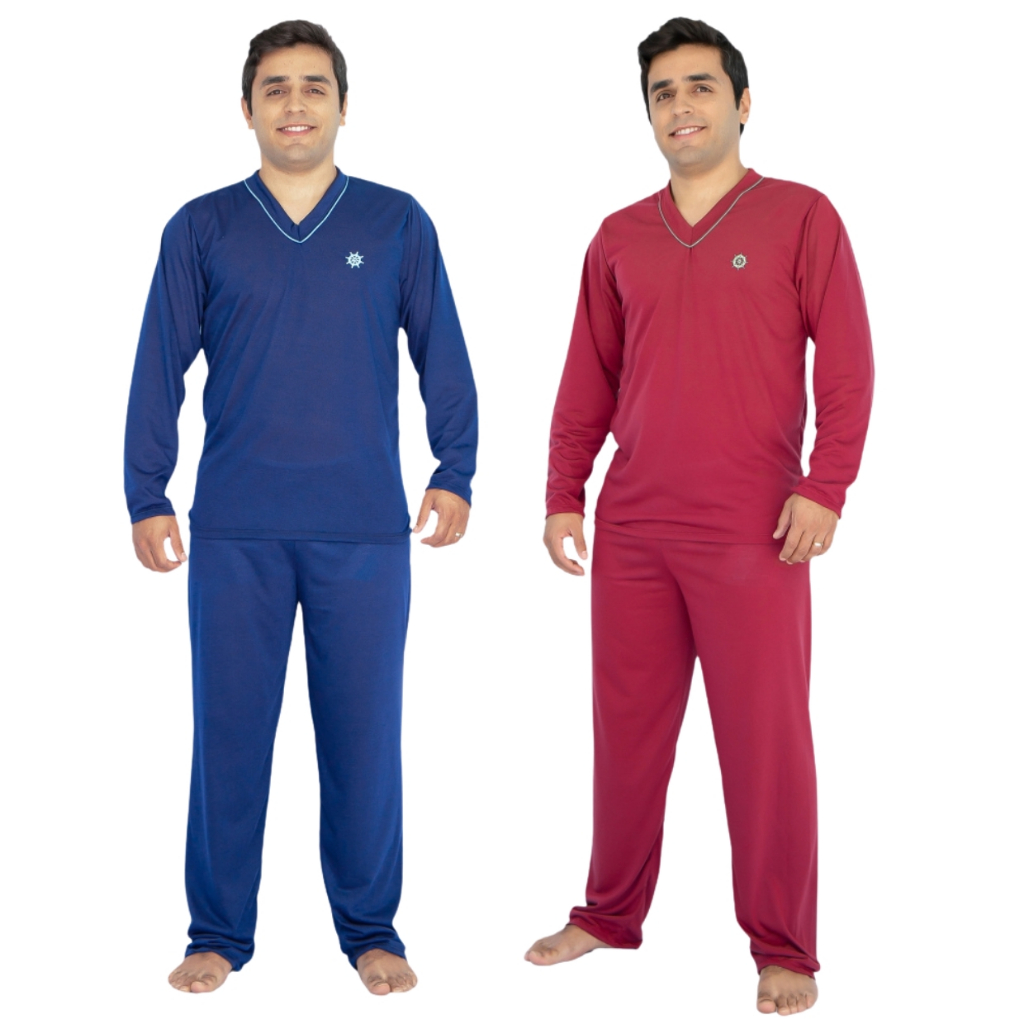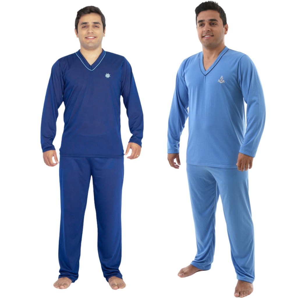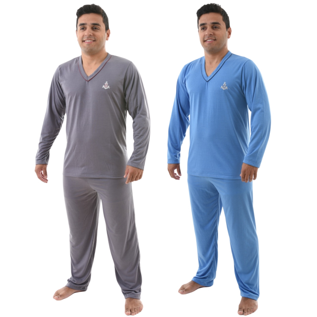 Kit 2 Pijama Masculino Longo Adulto Blusa Manga Comprida e Calça Inverno Noite