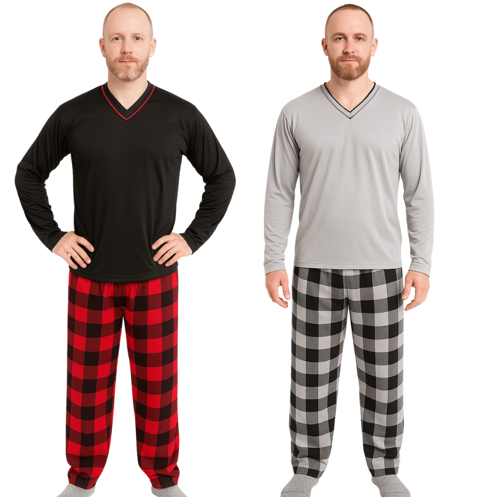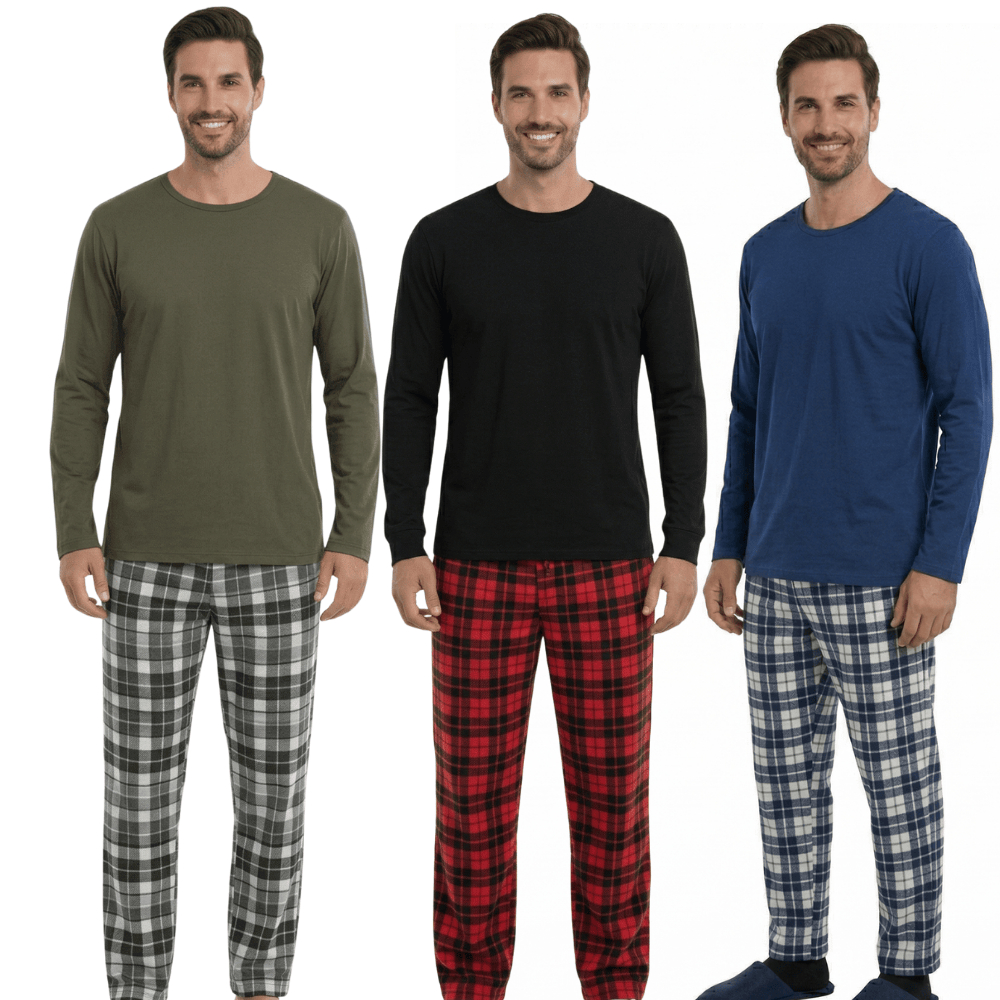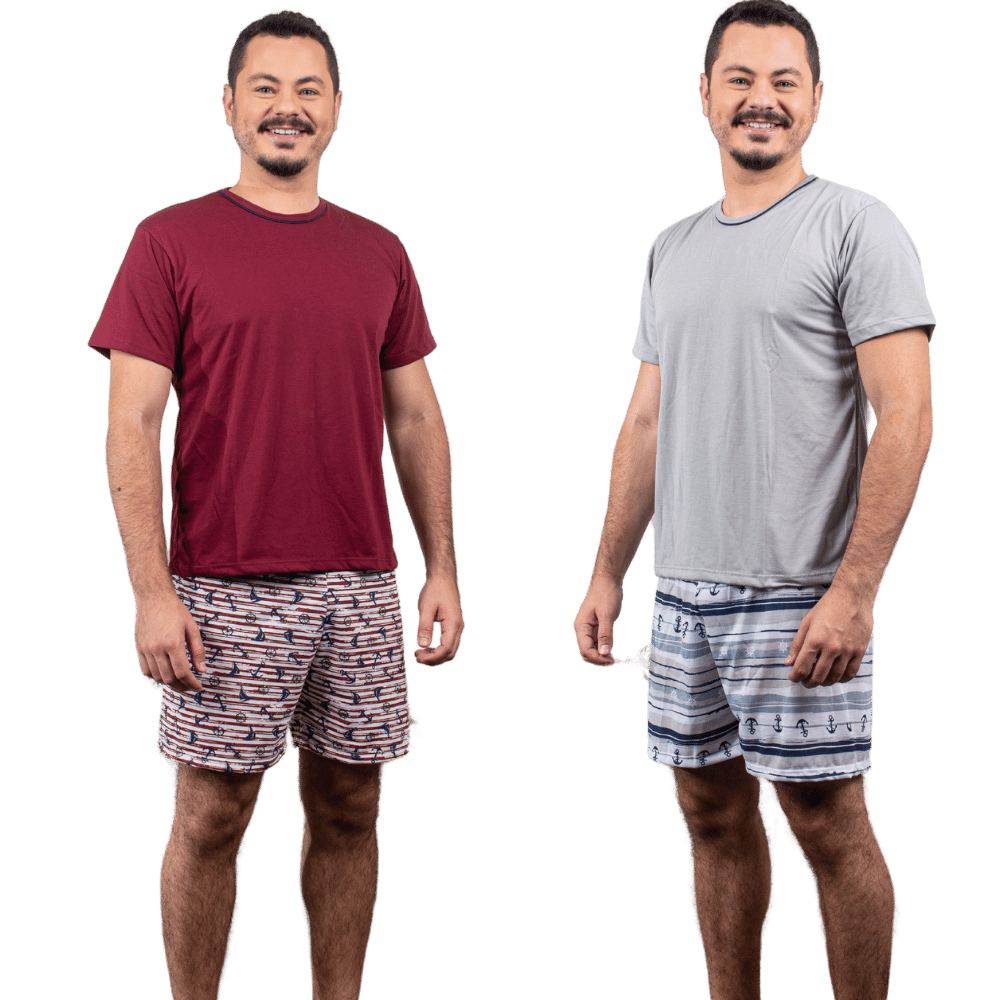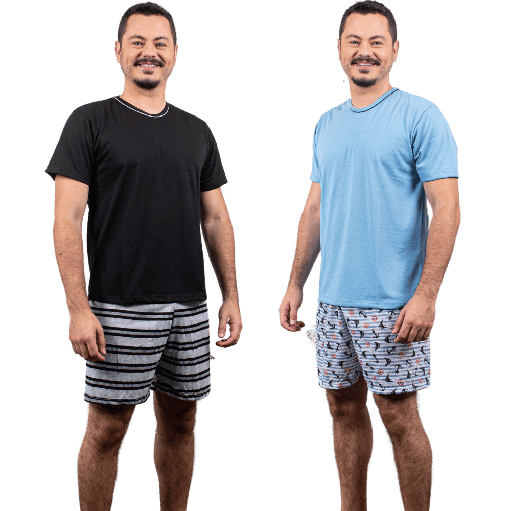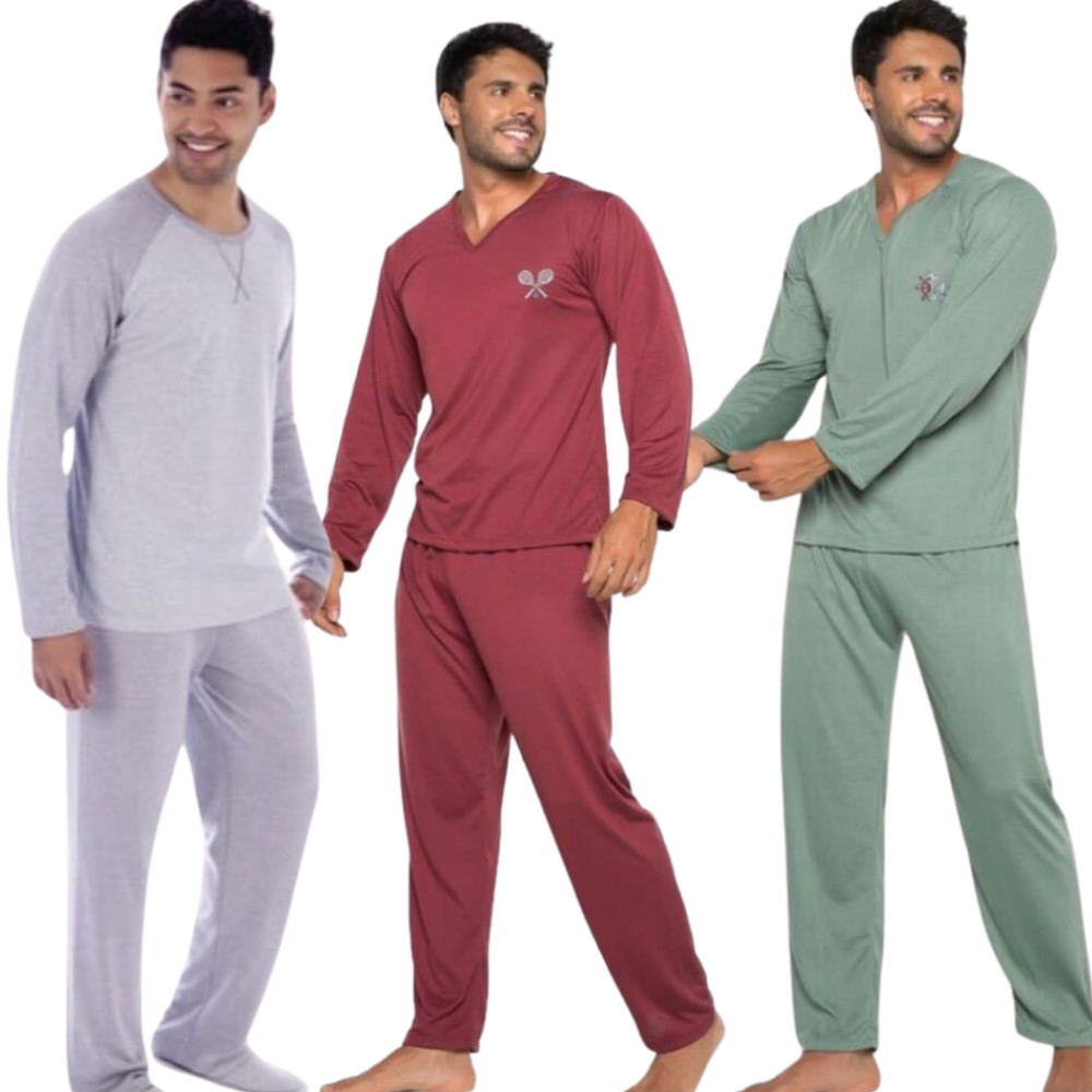 Kit 2 Pijama Masculino Longo Inverno Liso Básico/ Kit 2 Pijama Curto Básico Xadrez