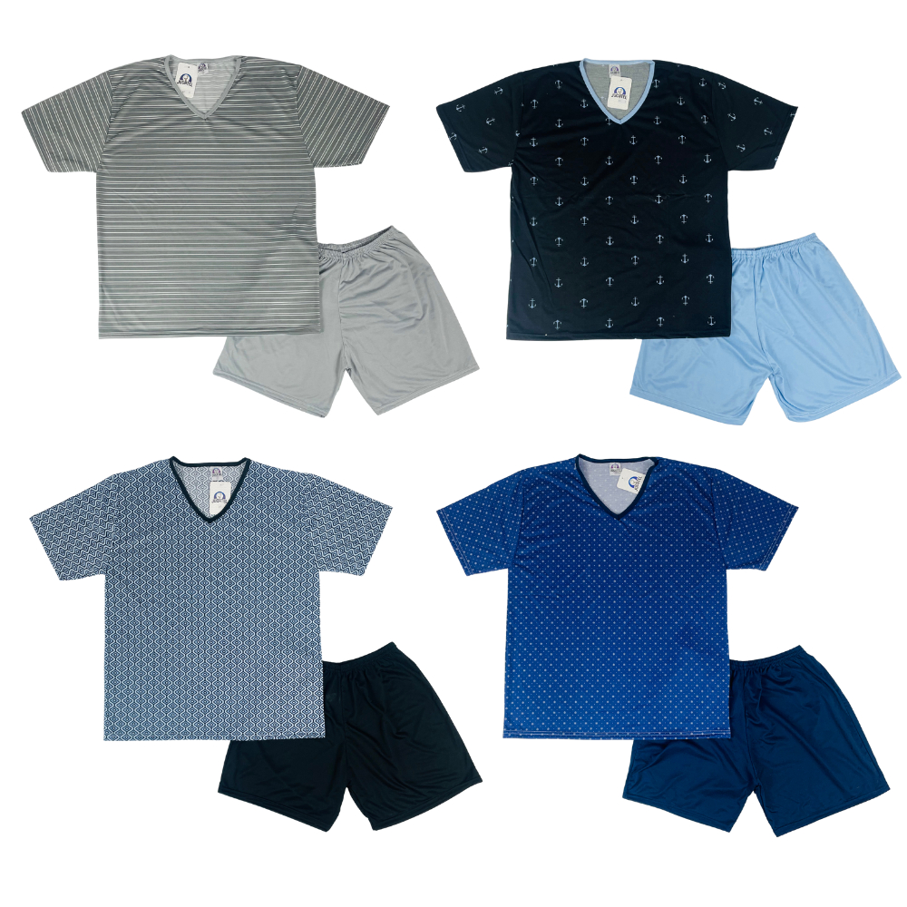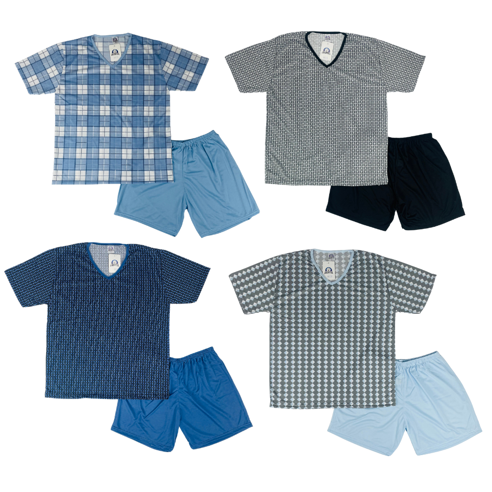 Kit 2 Pijama Verão Masculino Manga Curta Estampa Sortida P ao GG