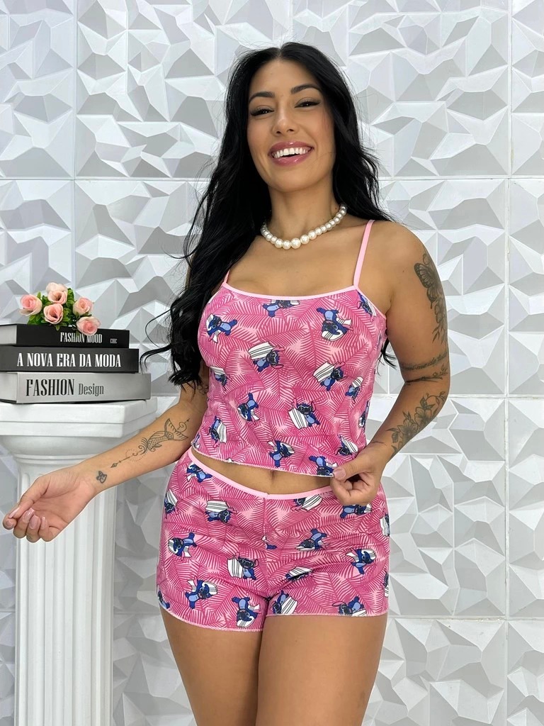 Kit 2 Pijamas Baby Doll Micro Estampado Conjunto Feminino SAPEQUINHA Short Doll Curto de Dormir