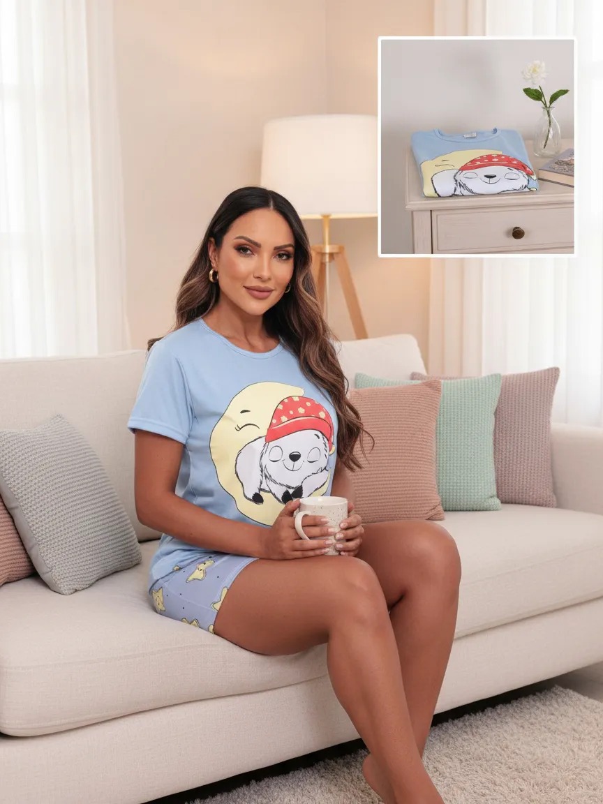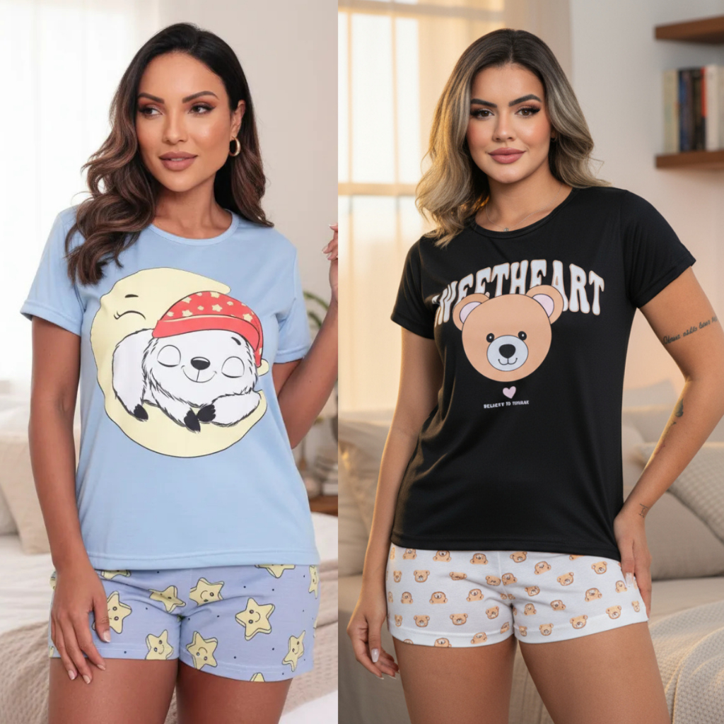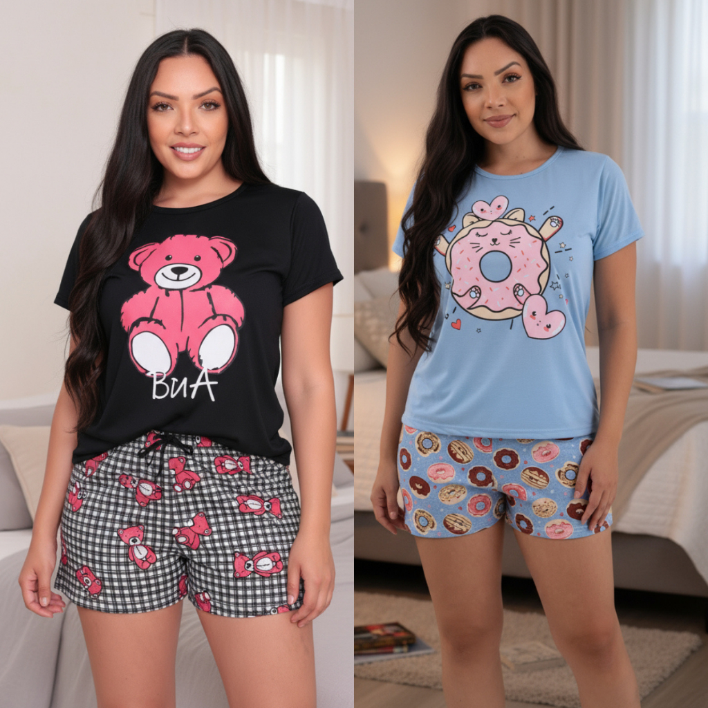 Kit 2 Pijamas Feminino Baby Doll Short Dormir Atacado Antialergico Promoção