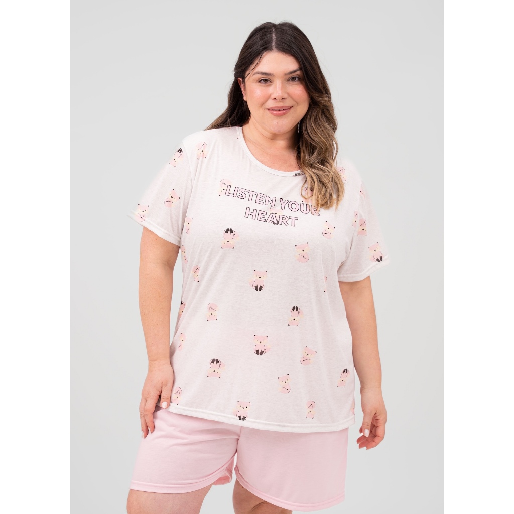 Kit 2 Pijamas Femininos Plus Size de Verão Leves Macios Confortáveis Dormir G1 ao G3