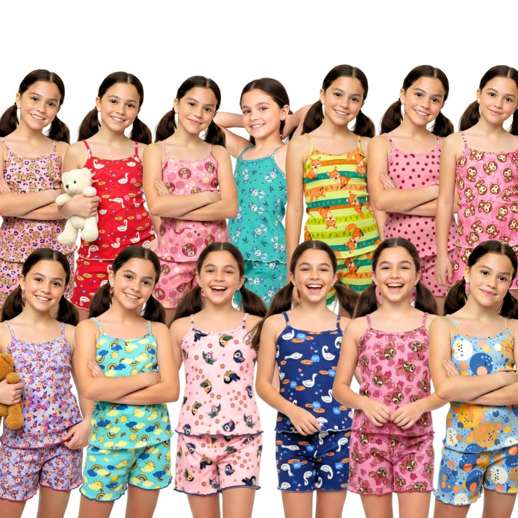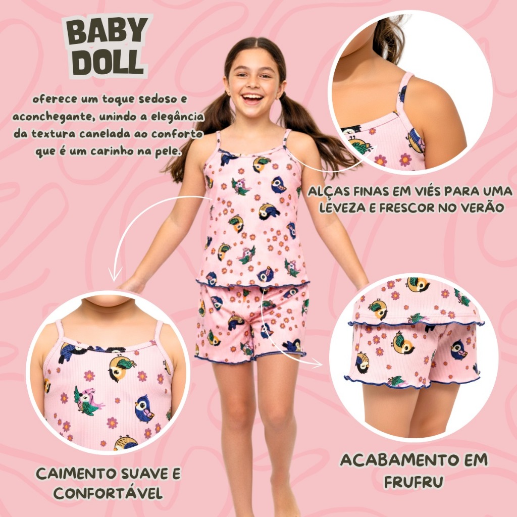 Kit 2 Pijamas Infantil/Juvenil Menina Babydoll Malha Suede Confortável