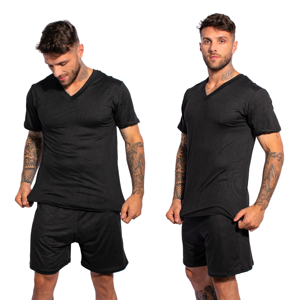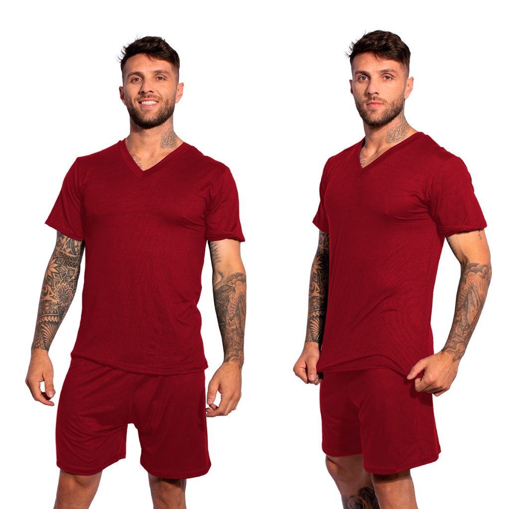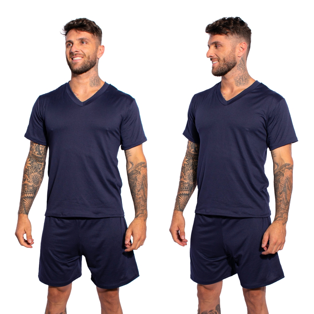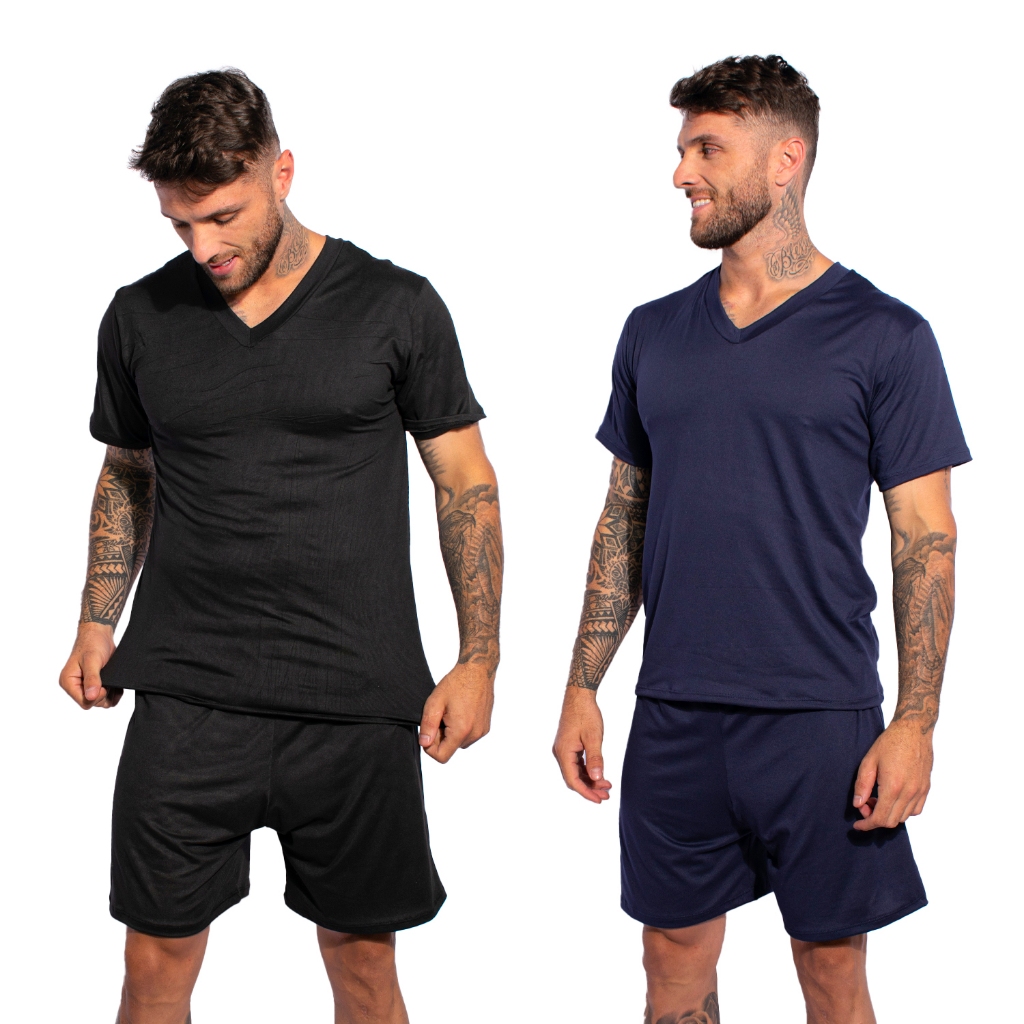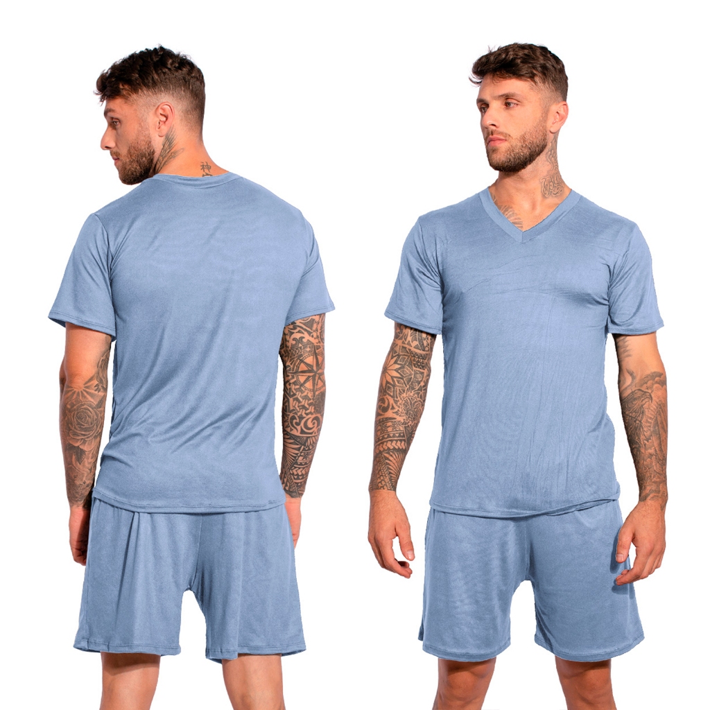 Kit 2 Pijamas Lisos Masculino Manga Curta Short Linha Noite Suede Adulto Verão