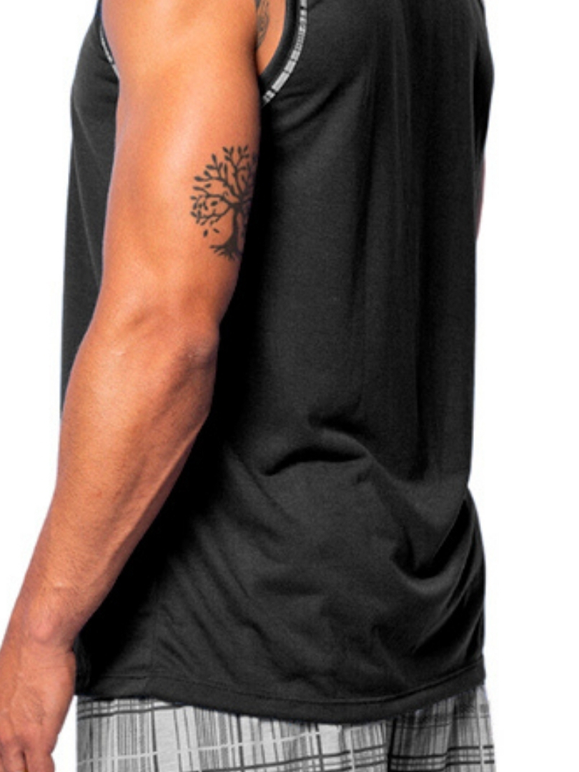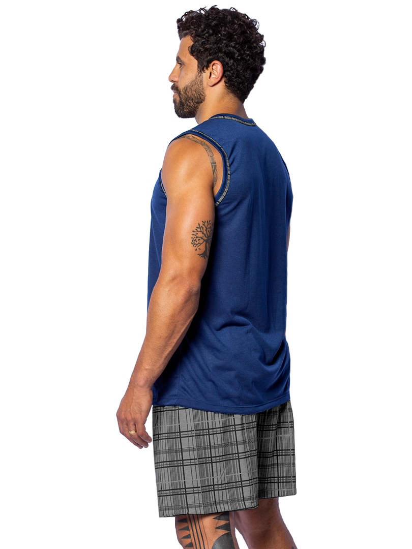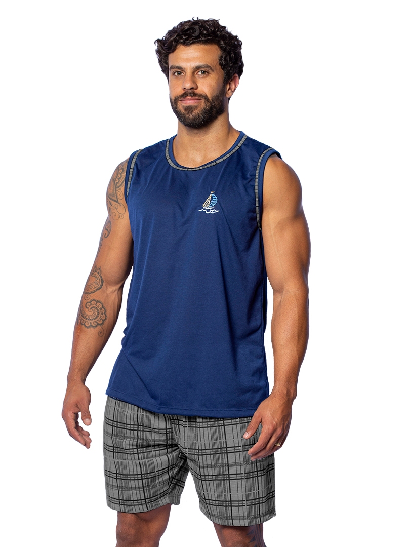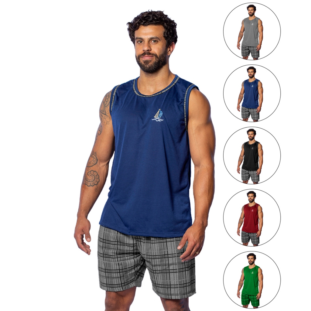 Kit 2 Pijamas Masculino Confortáveis Traje para Dormir Regata e Short em Malha Cores Diversificadas
