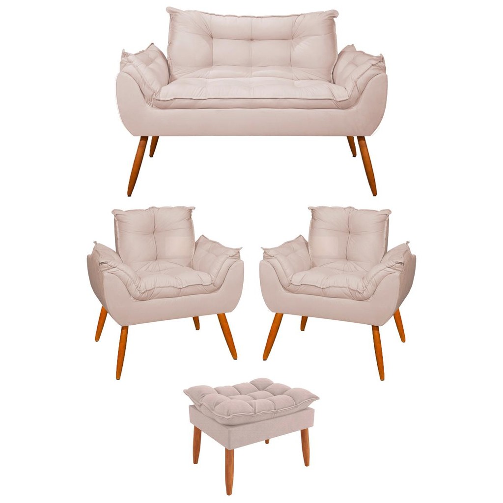 Kit 2 Poltronas + Namoradeira + Puff Opala Decorativa Balaqui