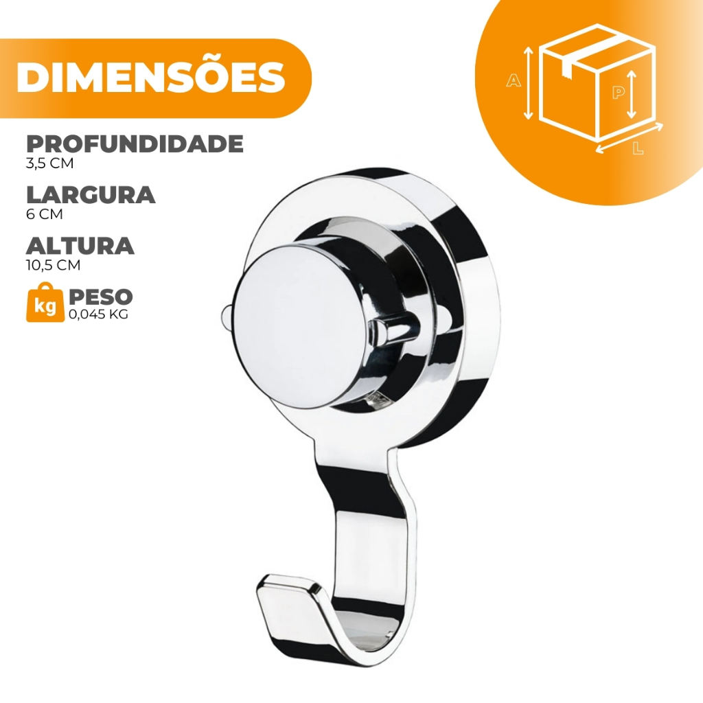 Kit 2 Porta Gancho Toalha de Rosto Banheiro Lavabo Cromado Fixação Ventosa Sem Furos Cromado Future
