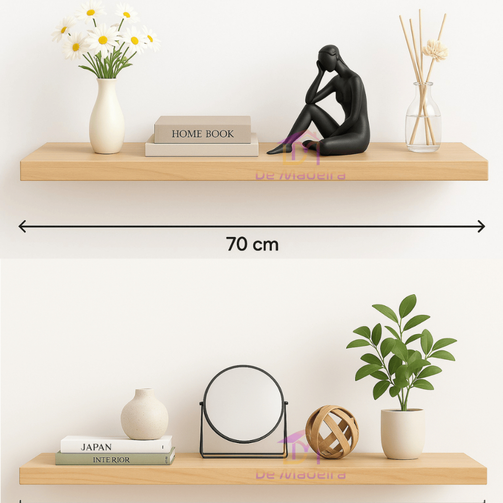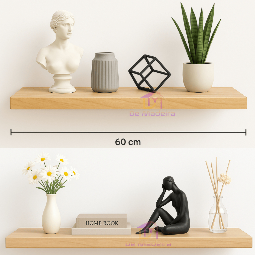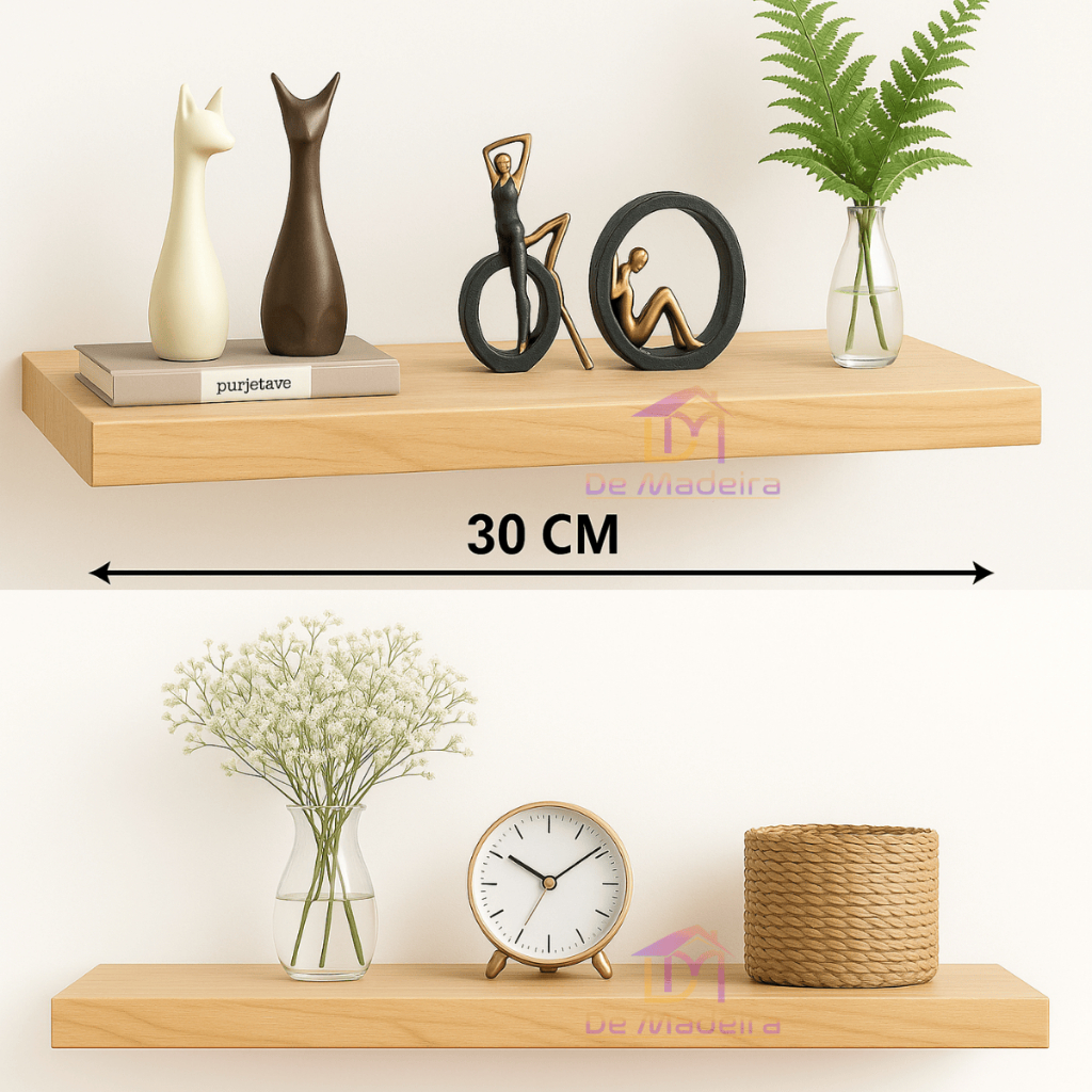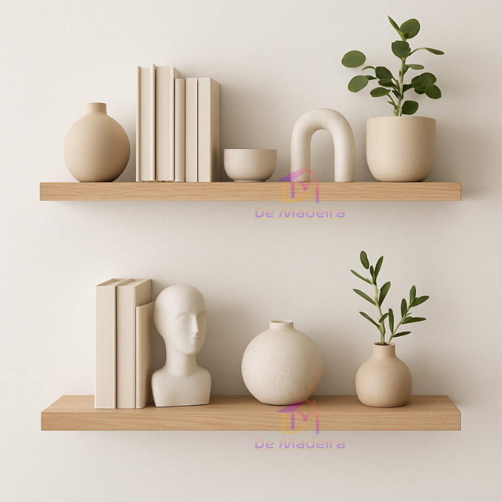 Kit 2 Prateleiras Nicho Com Suporte Invisível Madeira Maciça Para Sala, Cozinha, Quartos e Quintal