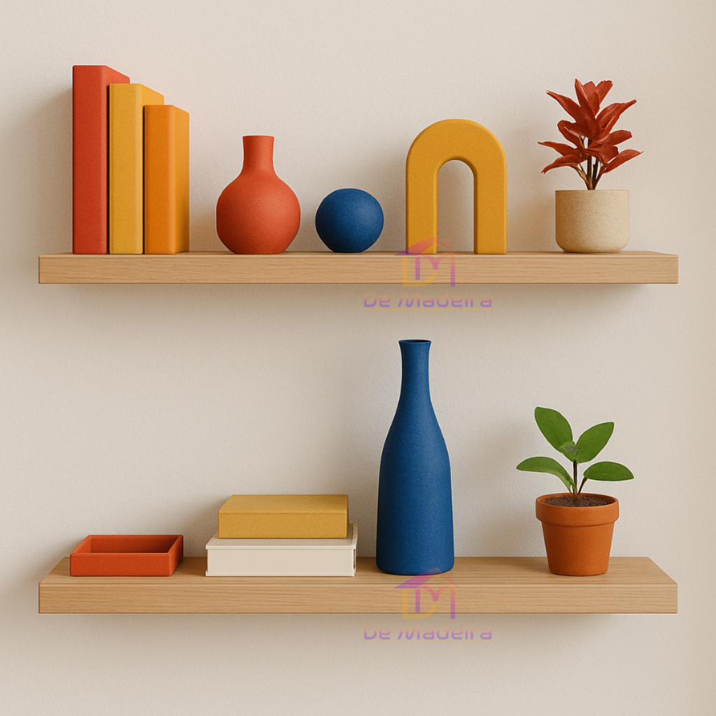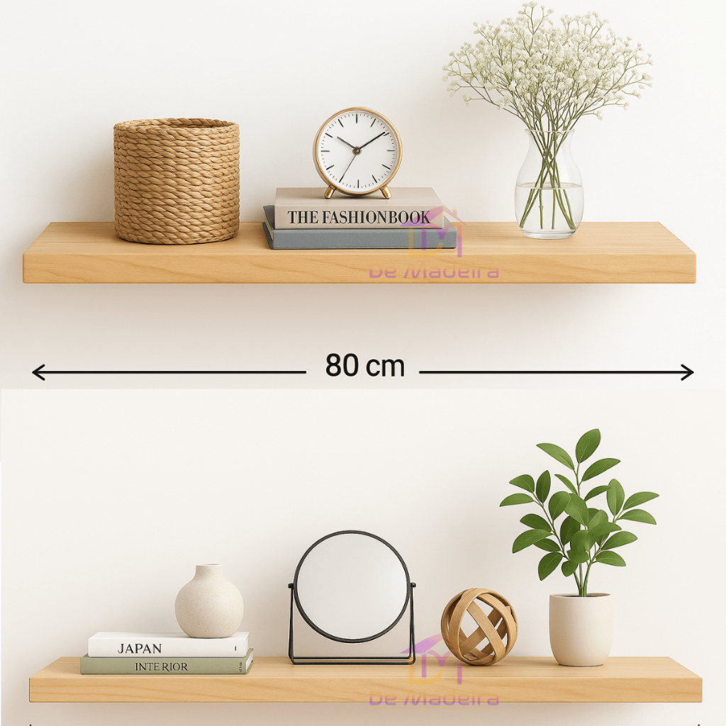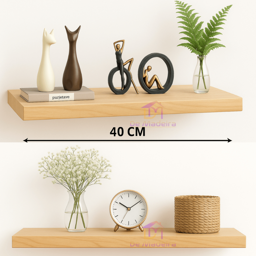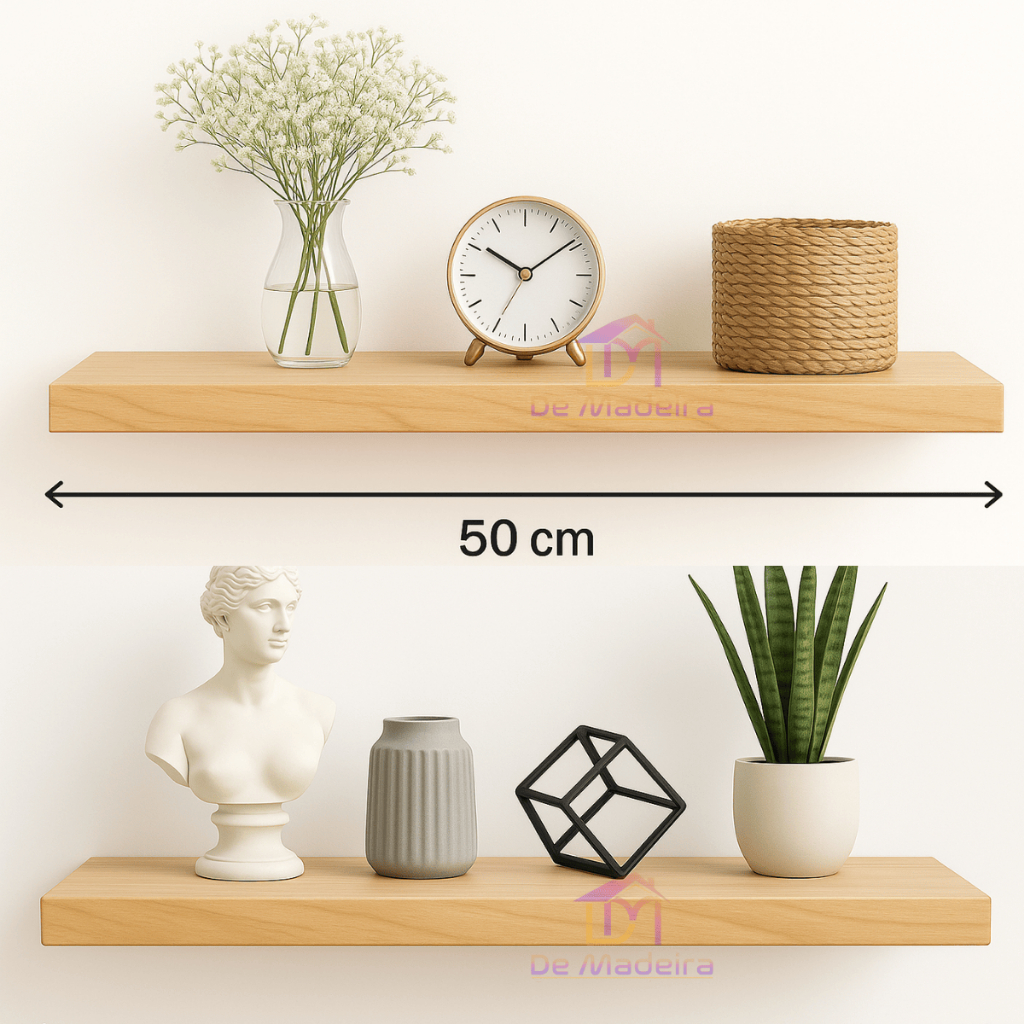 Kit 2 Prateleiras Nicho Com Suporte Invisível Madeira Maciça Para Sala, Cozinha, Quartos e Quintal
