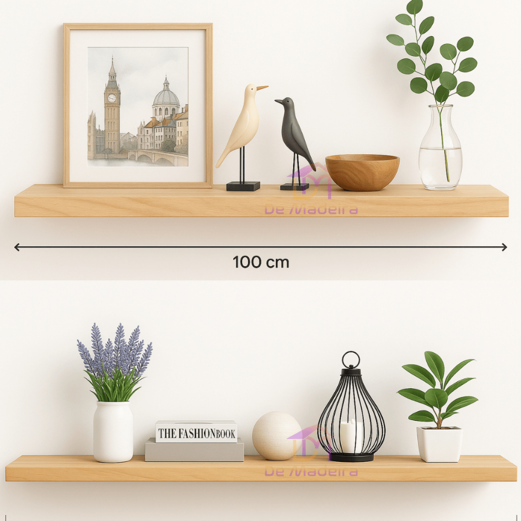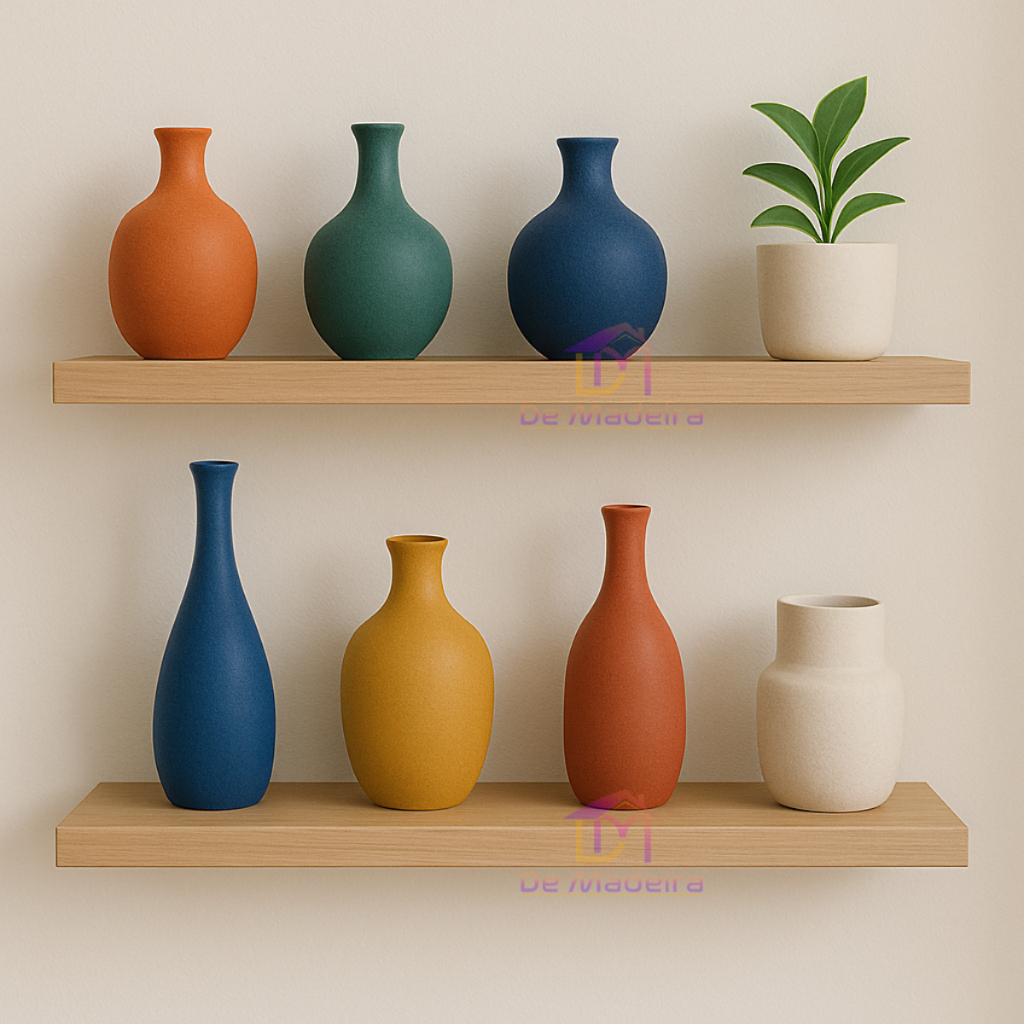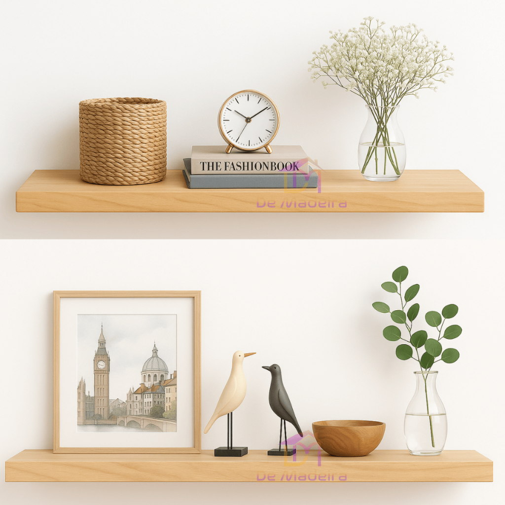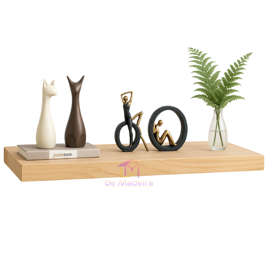 Kit 2 Prateleiras Nicho Com Suporte Invisível Madeira Maciça Para Sala, Cozinha, Quartos e Quintal