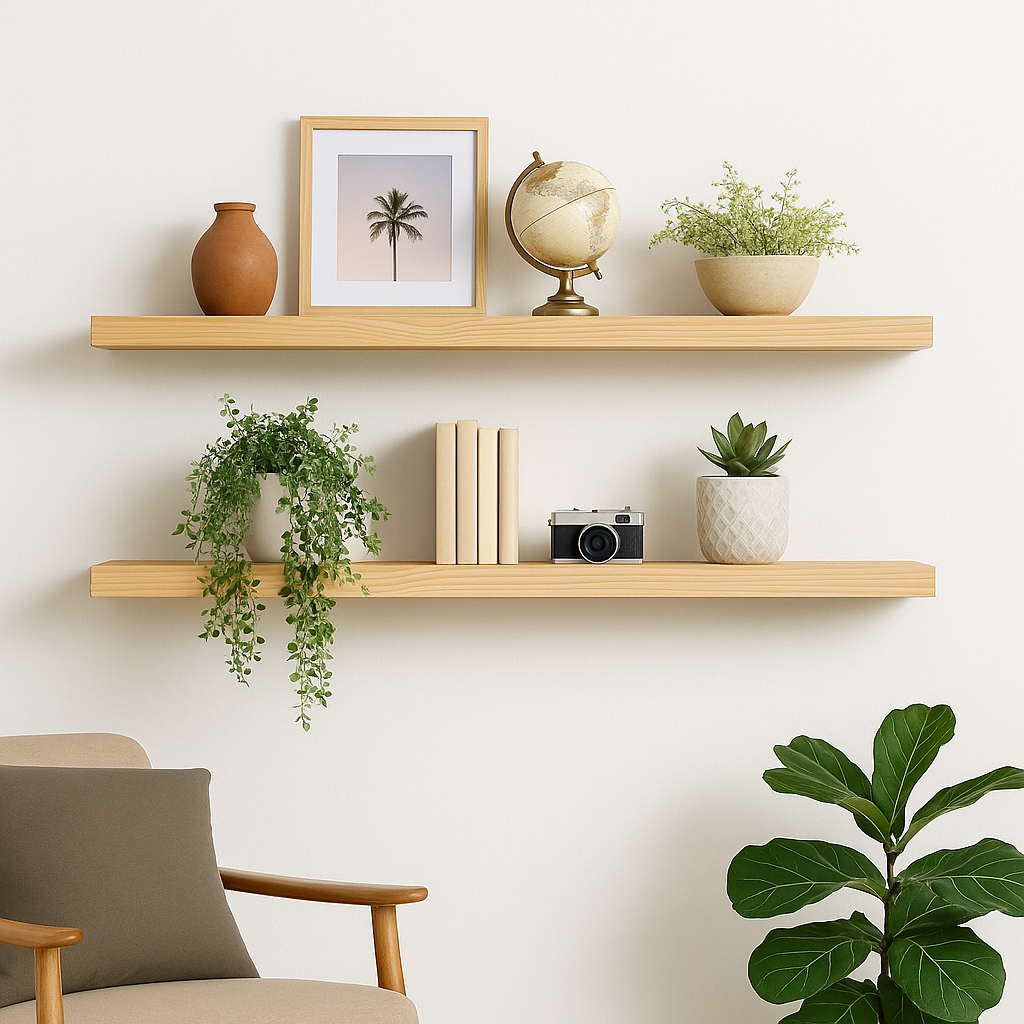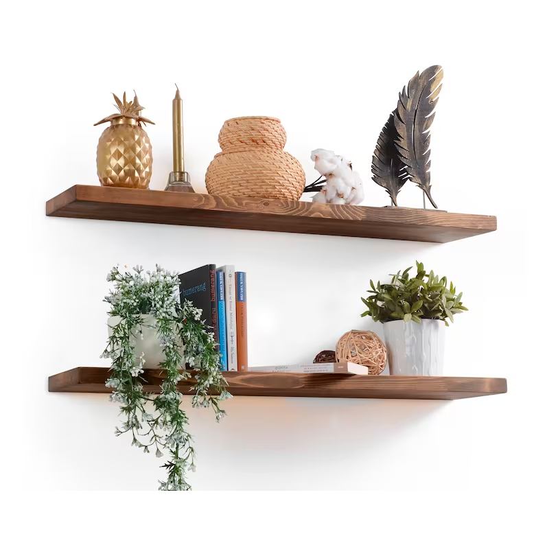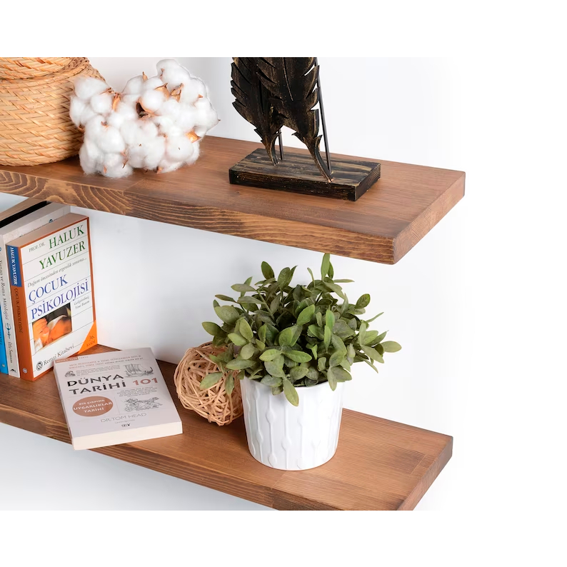 Kit 2 Prateleiras com suporte invisivel Madeira Maciça Envelhecida