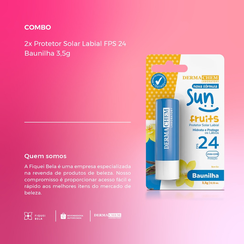 Kit 2 Protetor Solar Labial Baunilha FPS 24 3,5g Dermachem