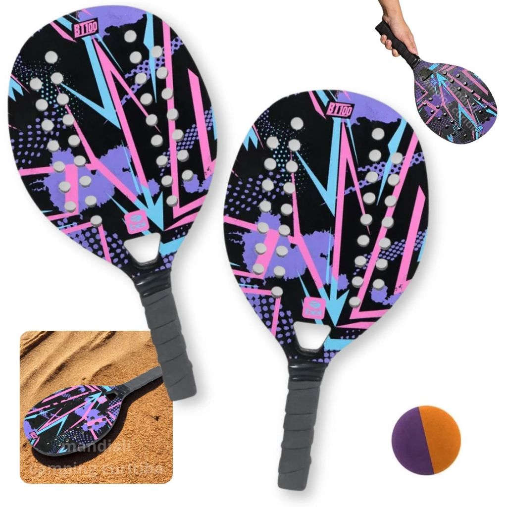 Kit 2 Raquetes Beach Tennis Madeira Lilás + 4 Bolinhas
