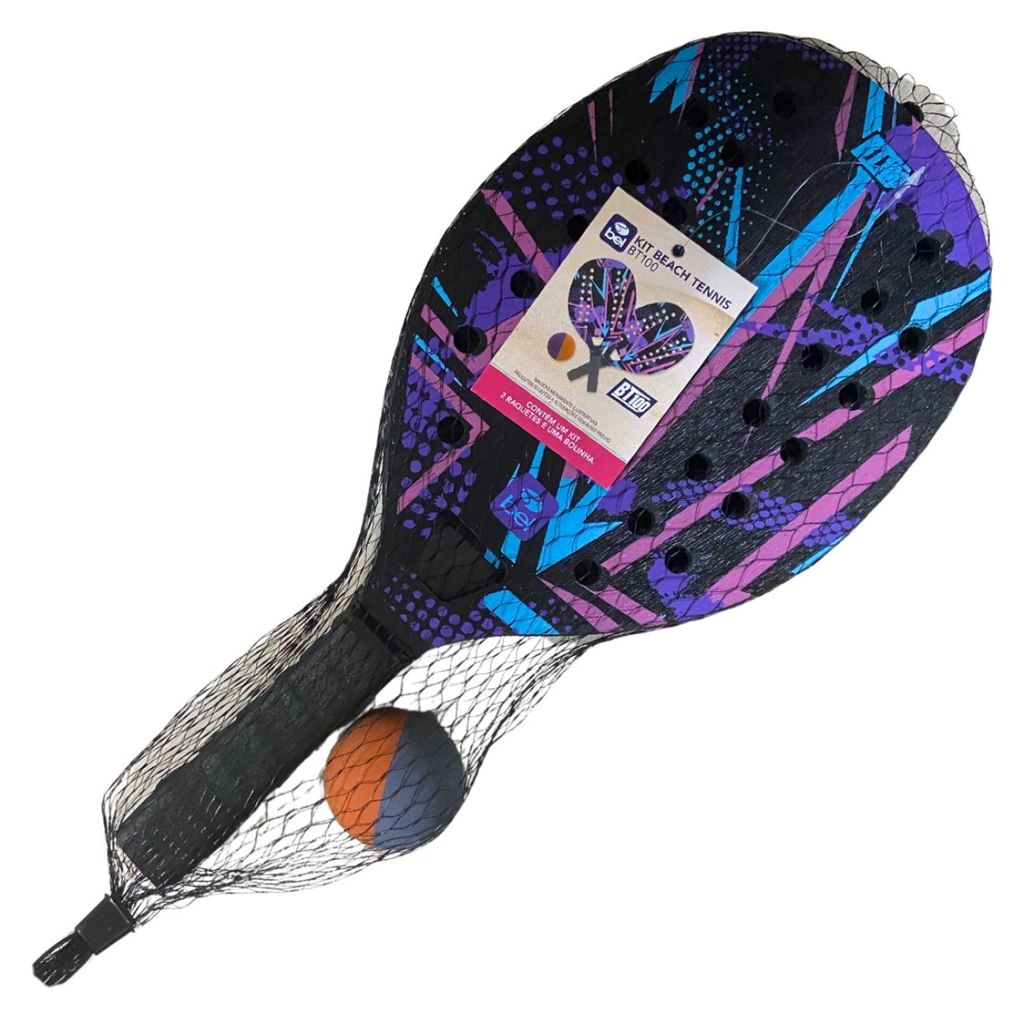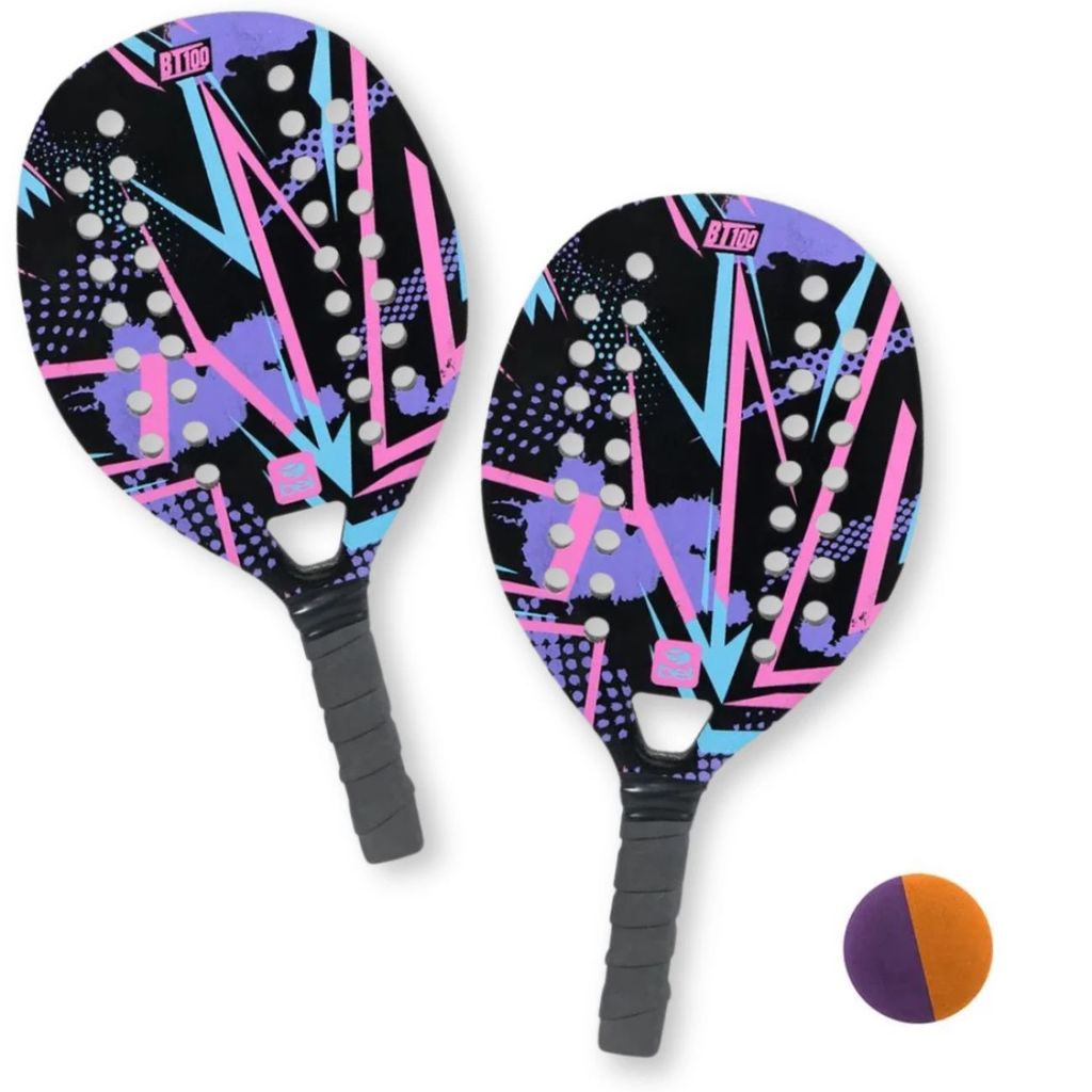 Kit 2 Raquetes para Beach Tennis de Praia em Madeira Lilas e Preta + Bolinha Bel Bt100