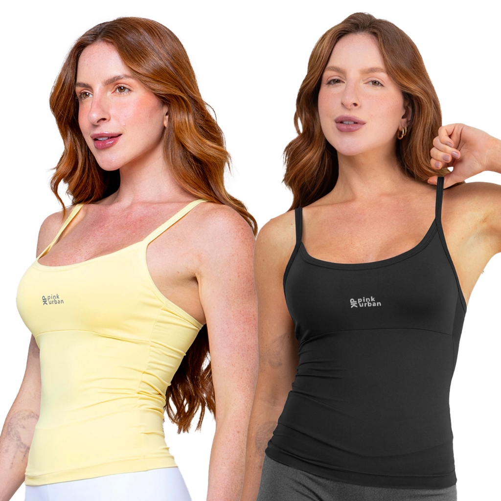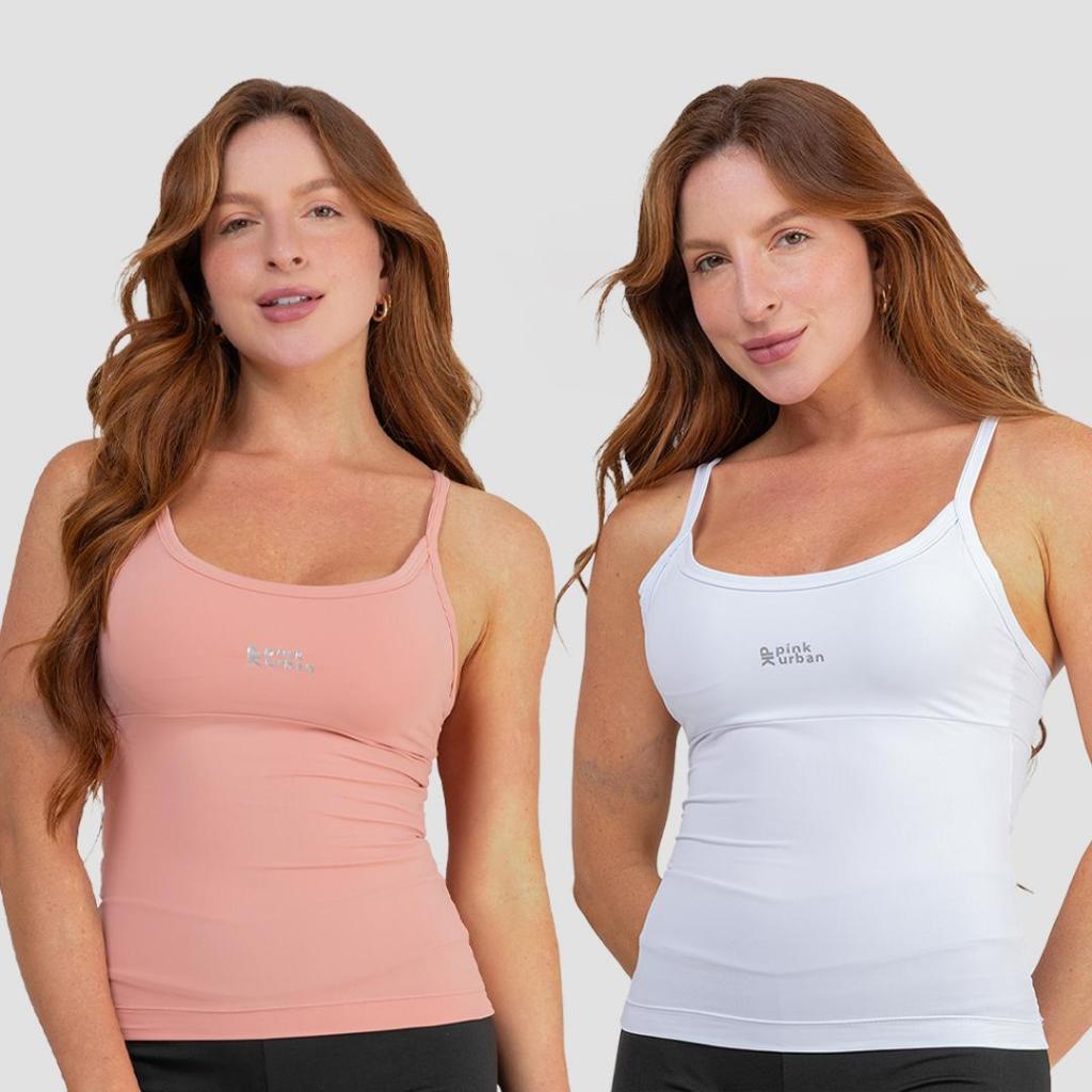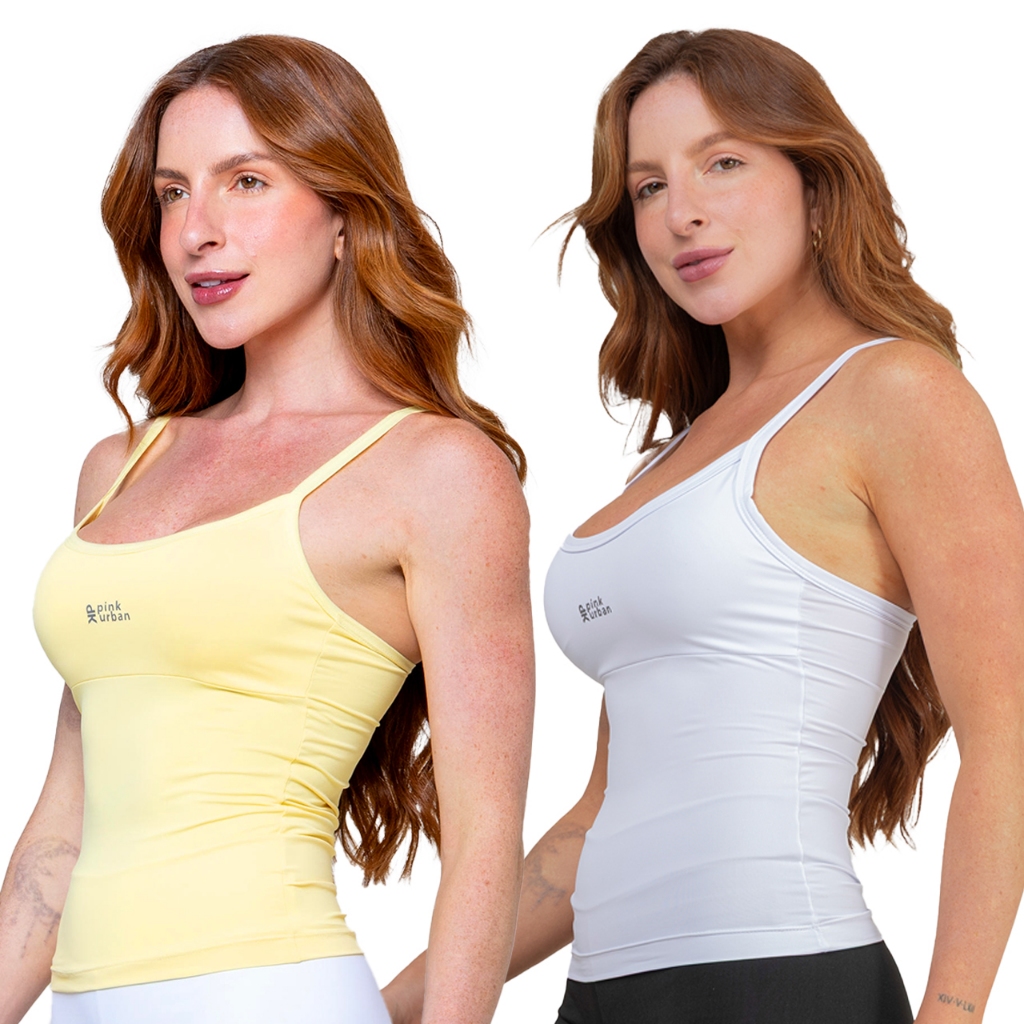 Kit 2 Regata Camiseta Alcinha Fitness Feminino Liso Poliamida Tank Top Slim Academia Verão