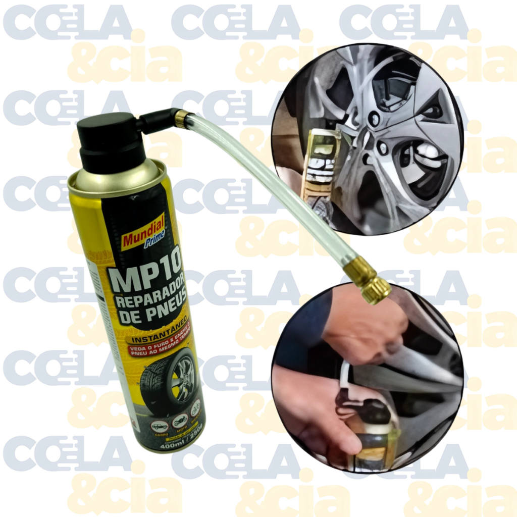 Kit 2 Reparador De Pneus Mundial Prime MP10 400ml, Enche E Veda O Furo