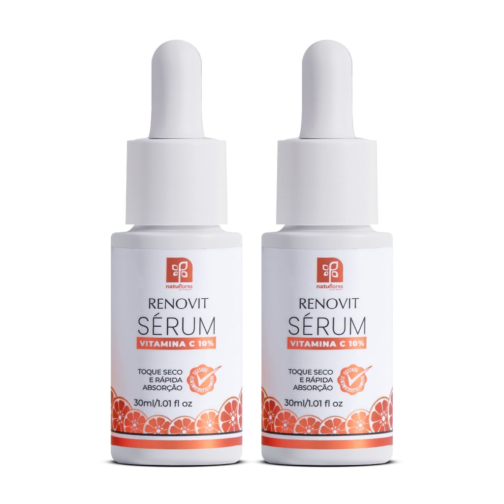 Kit 2 Sérum Renovit Vitamina C Pura Pele Sedosa Toque Seco Natuflores 30ml