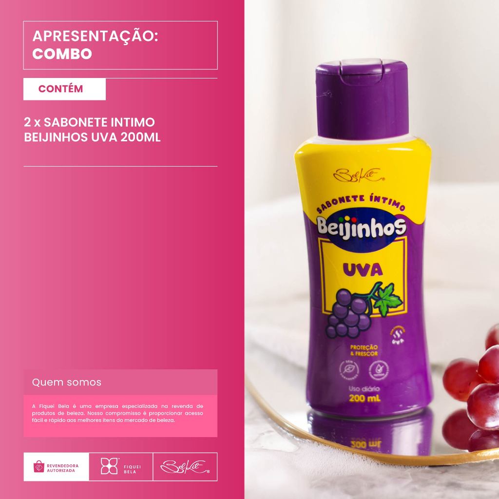Kit 2 Sabonete Íntimo Feminino Uva Beijinhos Proteção e Frescor 200ml Belkit