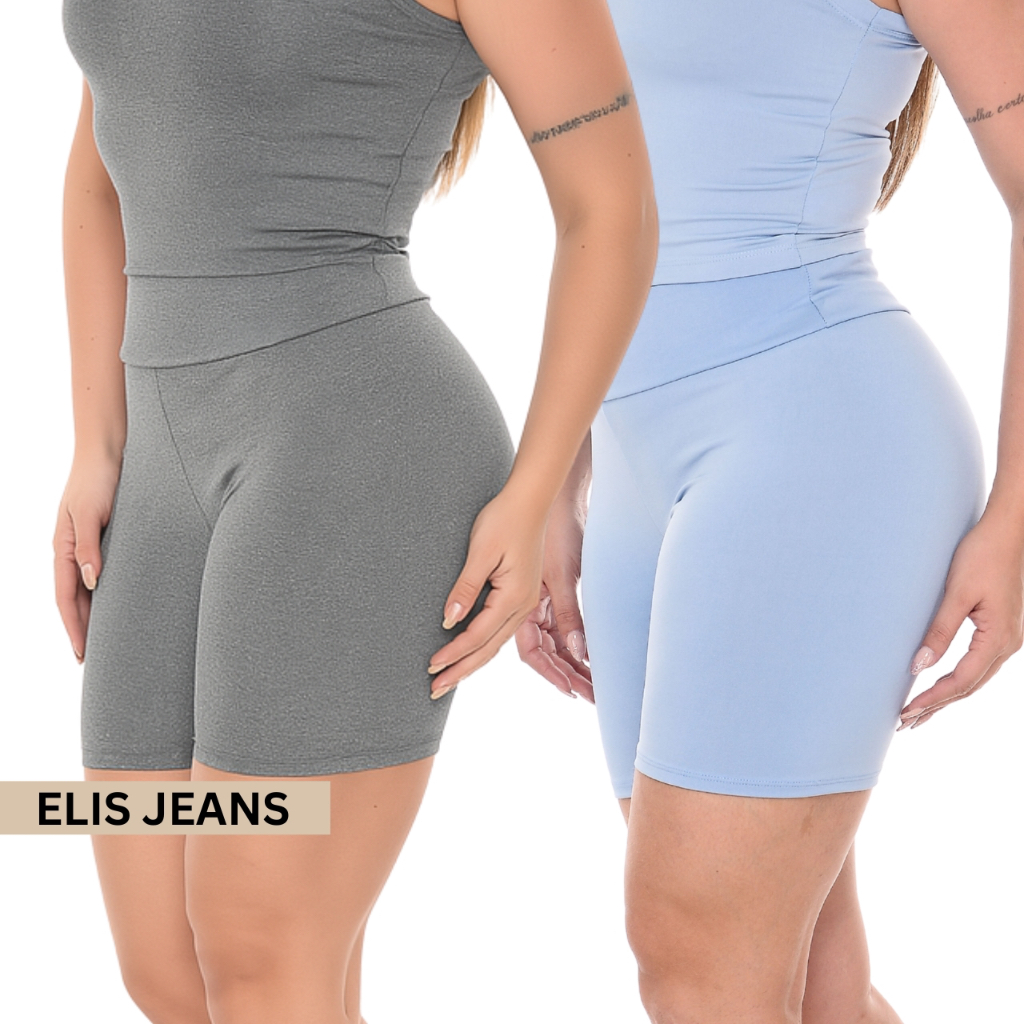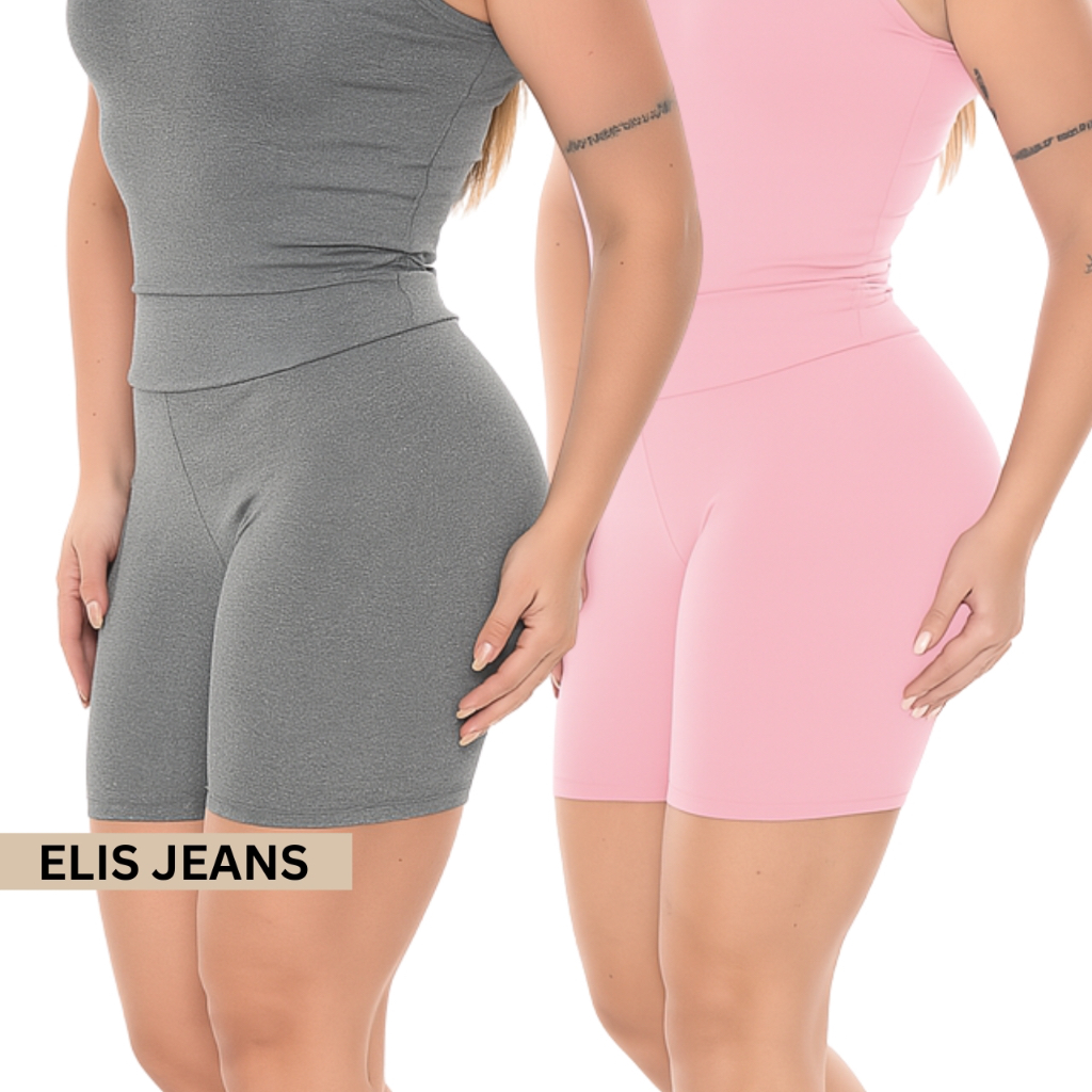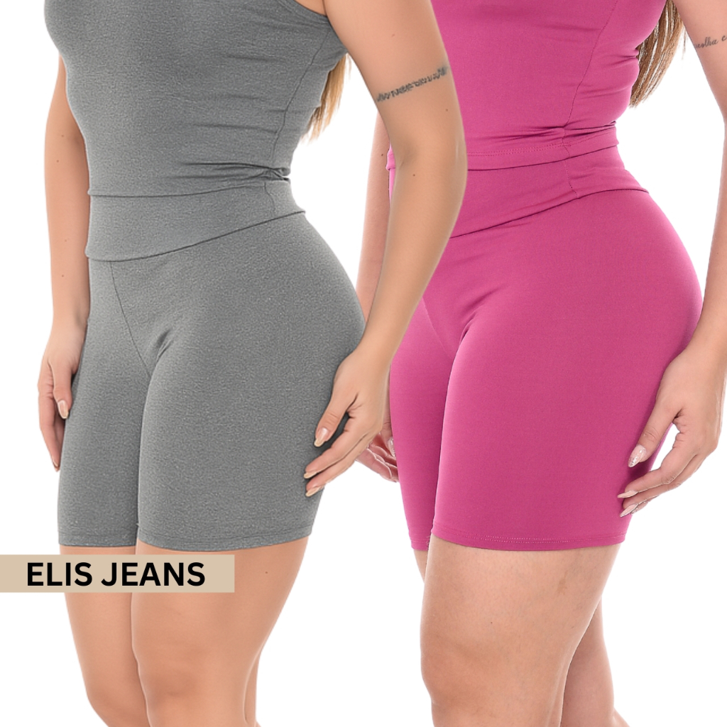Kit 2 Shorts Feminino Fitness Meia Coxa Cintura Alta Bermuda Legging Zero Transparência
