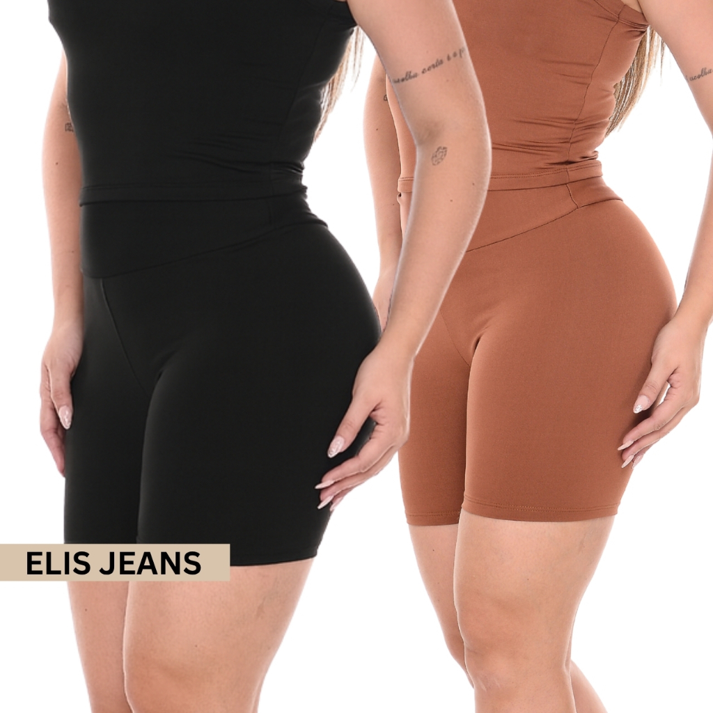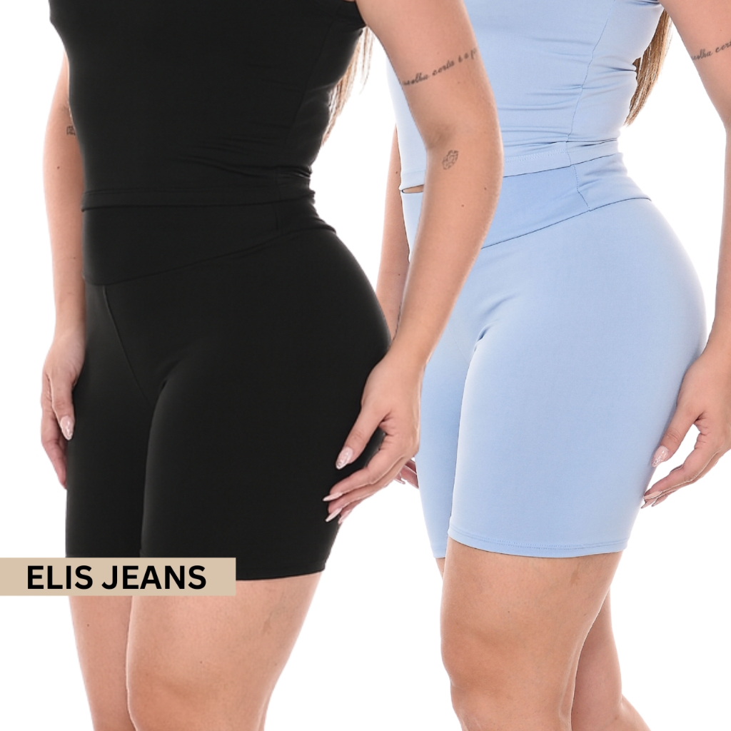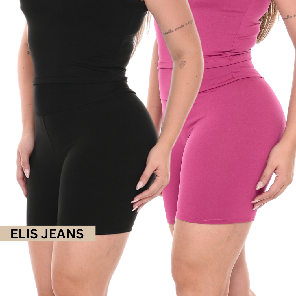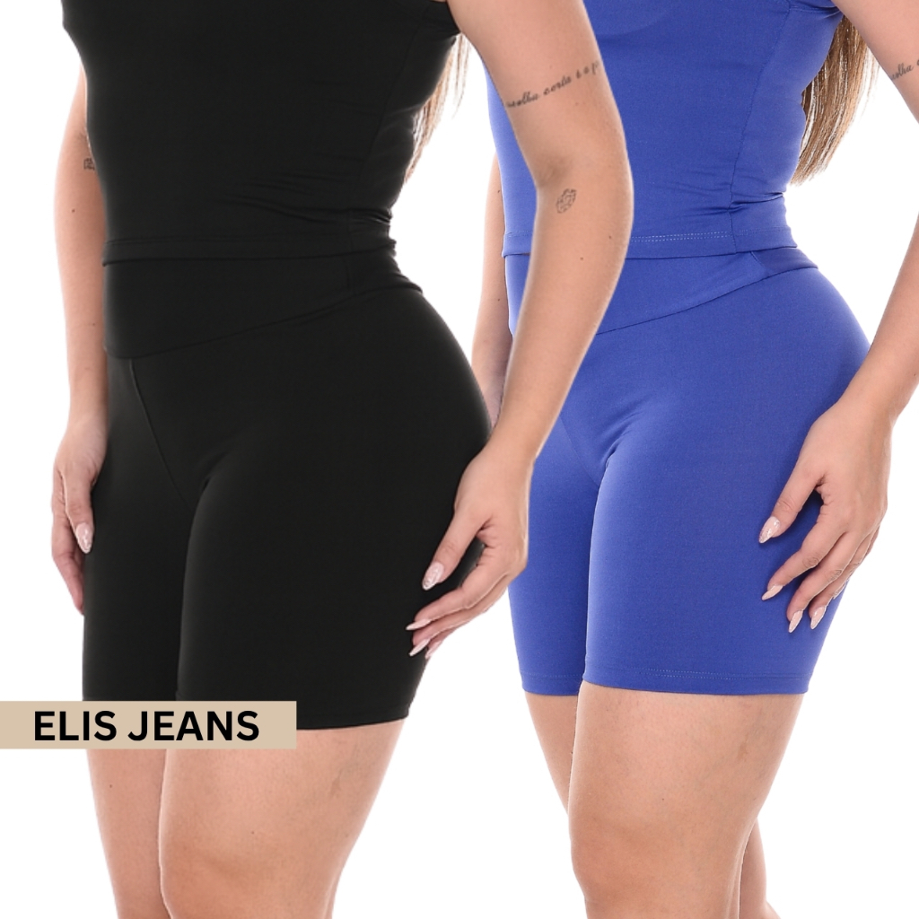 Kit 2 Shorts Feminino Fitness Meia Coxa Cintura Alta Bermuda Legging Zero Transparência