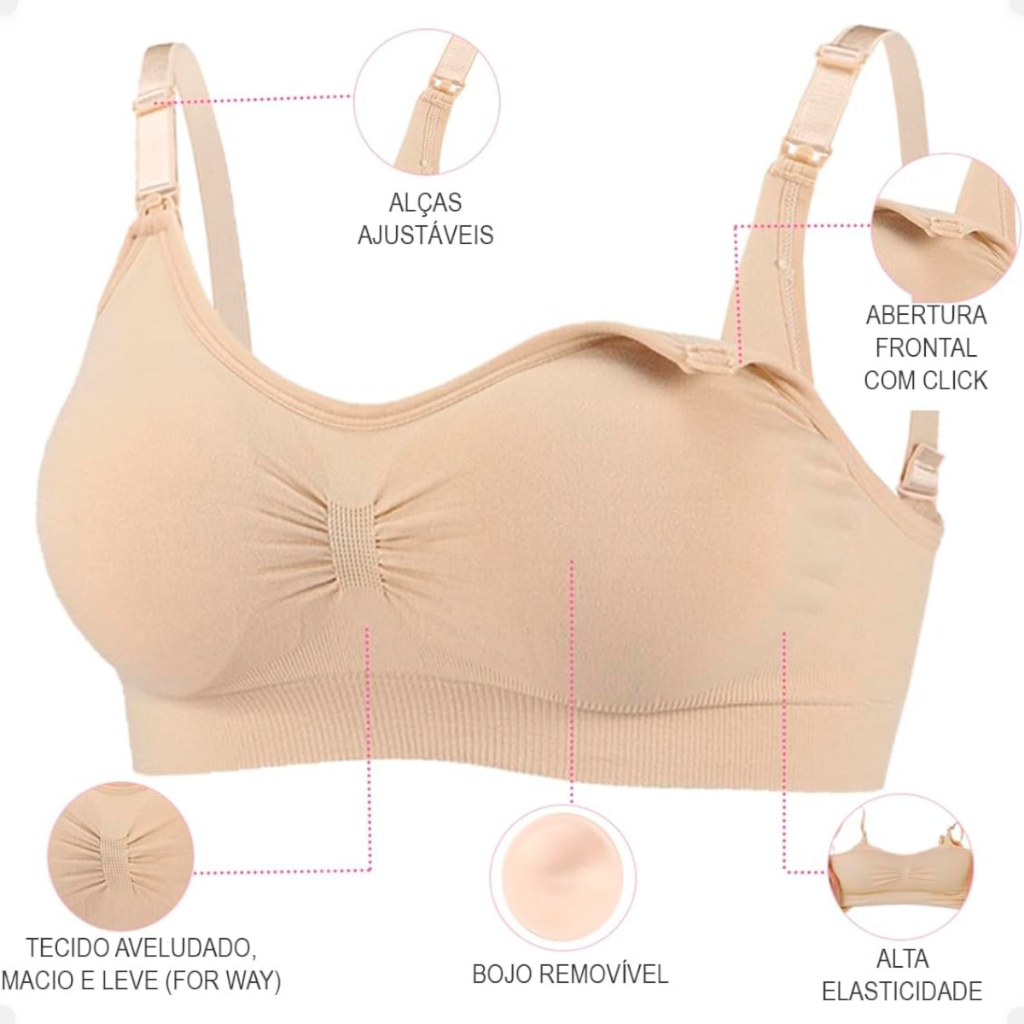 Kit 2 Sutiã de Amamentação Com Bojo Removível Reforçado Liso Cores Sortidas Ultra Confortável