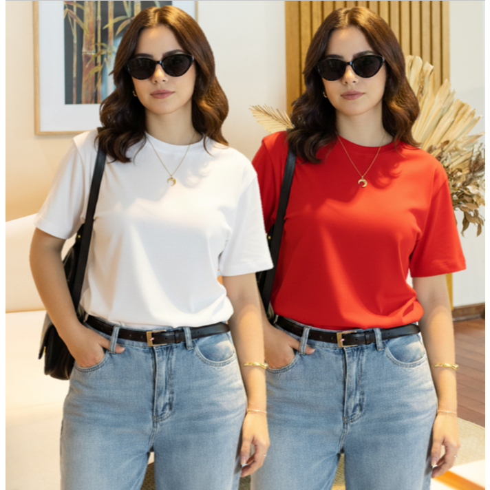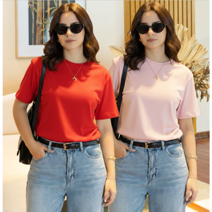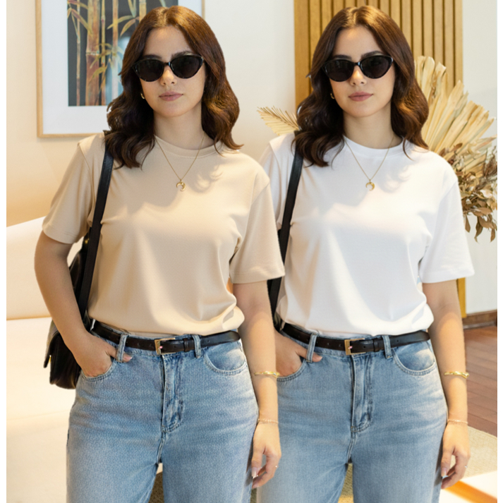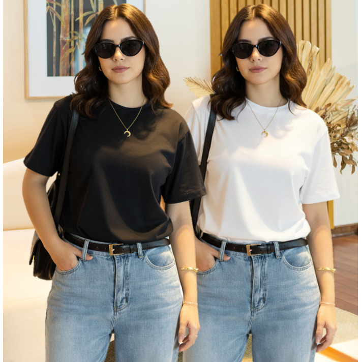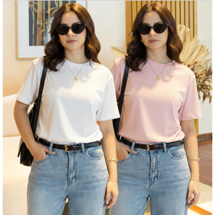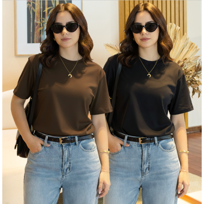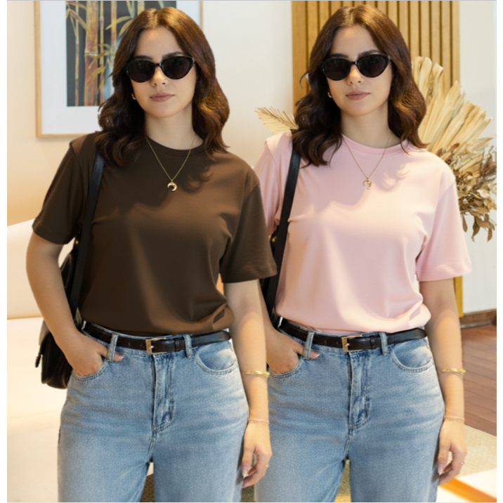 Kit 2 T-shirt Lisa Sem Estampa Feminina e Masculina 100% Algodão Camisa Unissex