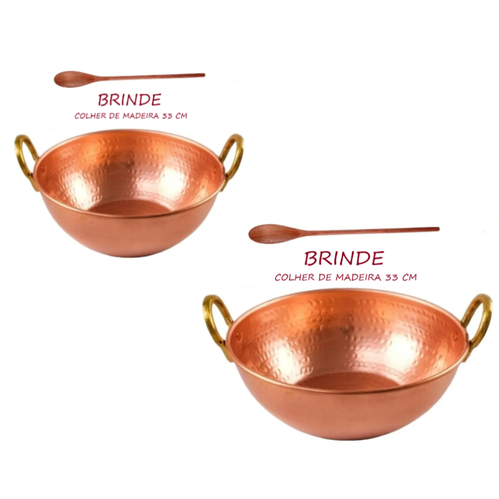 Kit 2 Tachos de Cobre Puro Com Alças Em Bronze - 3 e 5 Litros Reforçados